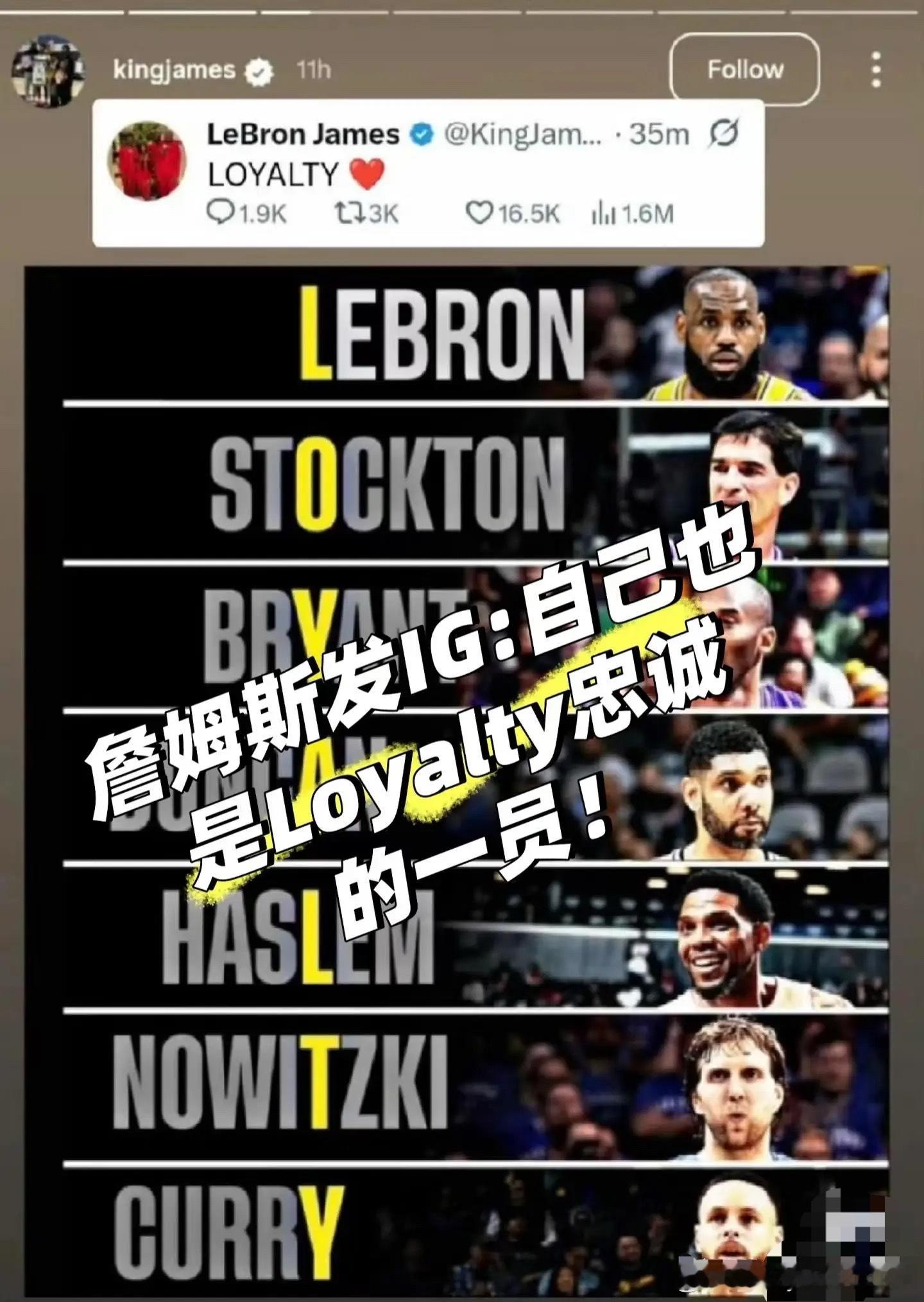 詹姆斯发布动态宣称自己也是loyalty忠诚小组成员,遭到国外媒体嘲讽
