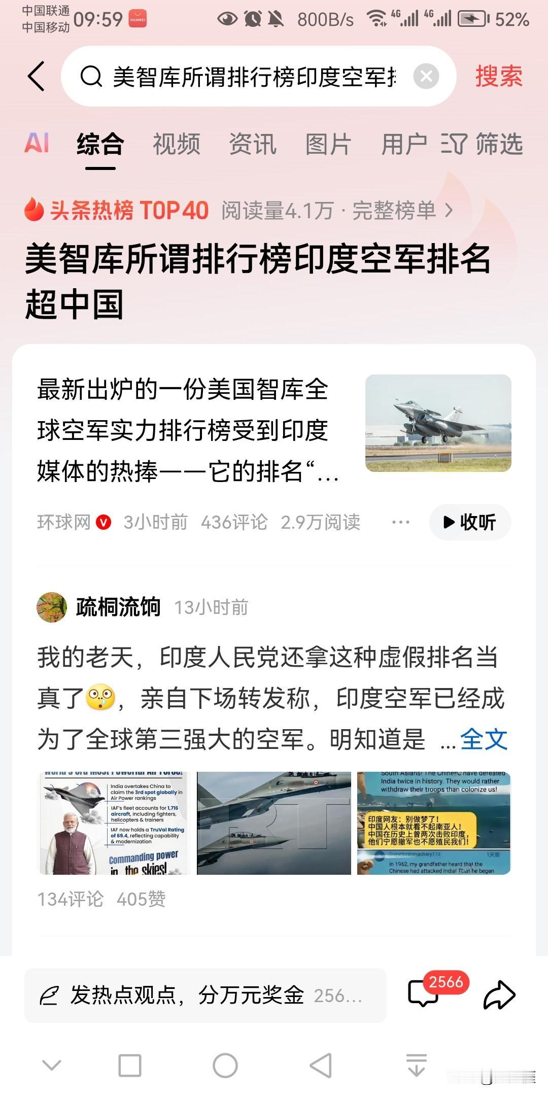 美智库最近发布了一个全球各国空军实力排行榜,大家猜一猜榜单前四名分别是哪些国家??? 首先毫无疑问美国排在第一位,毕竟是美国人自己评的,肯定是自己排第一。 其次是俄罗斯第二名,俄乌冲突俄罗斯空军表现拉胯,不知道第二名的依据何在。 第三名更加让人意外,竟然是印度。印度最近被打了六架战机,还能排第三名,这是什么逻辑? 第四名才是中国。先别说中国有多款五六代战机,就连歼-10C这种快淘汰的机型都能击败阵风战斗机,为何只排第四名?看不懂。 大家认可这个排名吗?