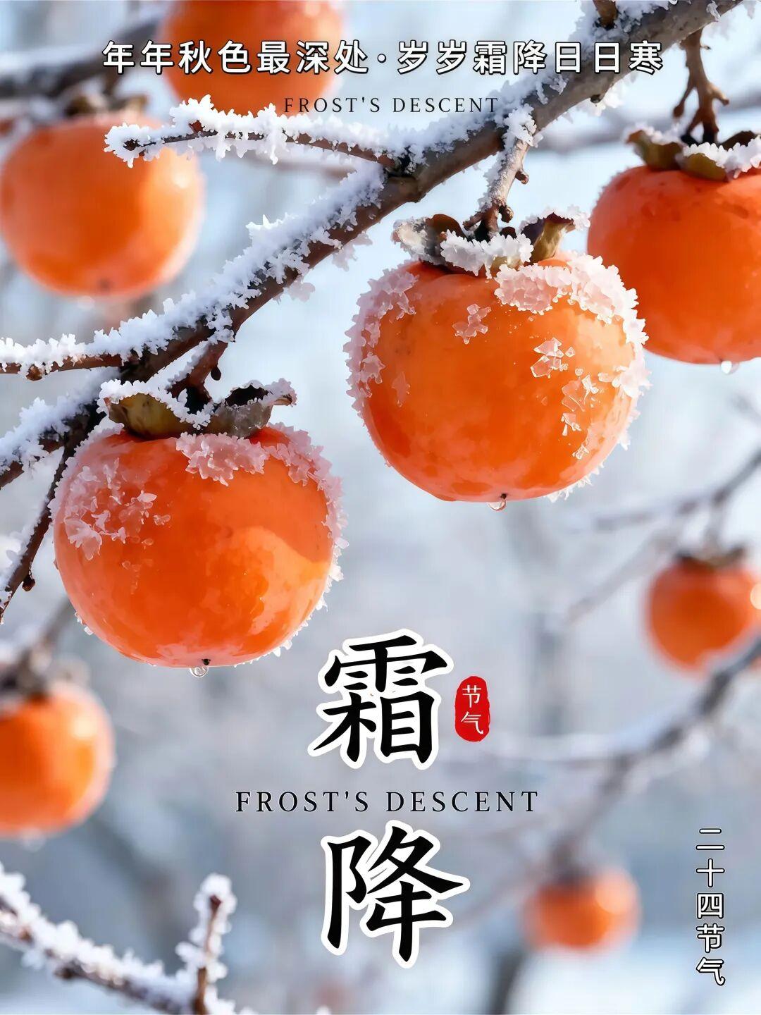 【霜降】霜降是秋天的句点,却也是冬天的序章,所有的等待,都在为下一场美好铺垫。 风里开始带了凉,霜花悄悄爬上窗,才懂秋天的最后一笔,写满了温柔的提醒。 一朝秋暮,遍地霜华,心有诗意,处处清欢。 霜白覆了枯叶,却没盖住泥土的香,原来即使在冷季,生命的力量也从未缺席。