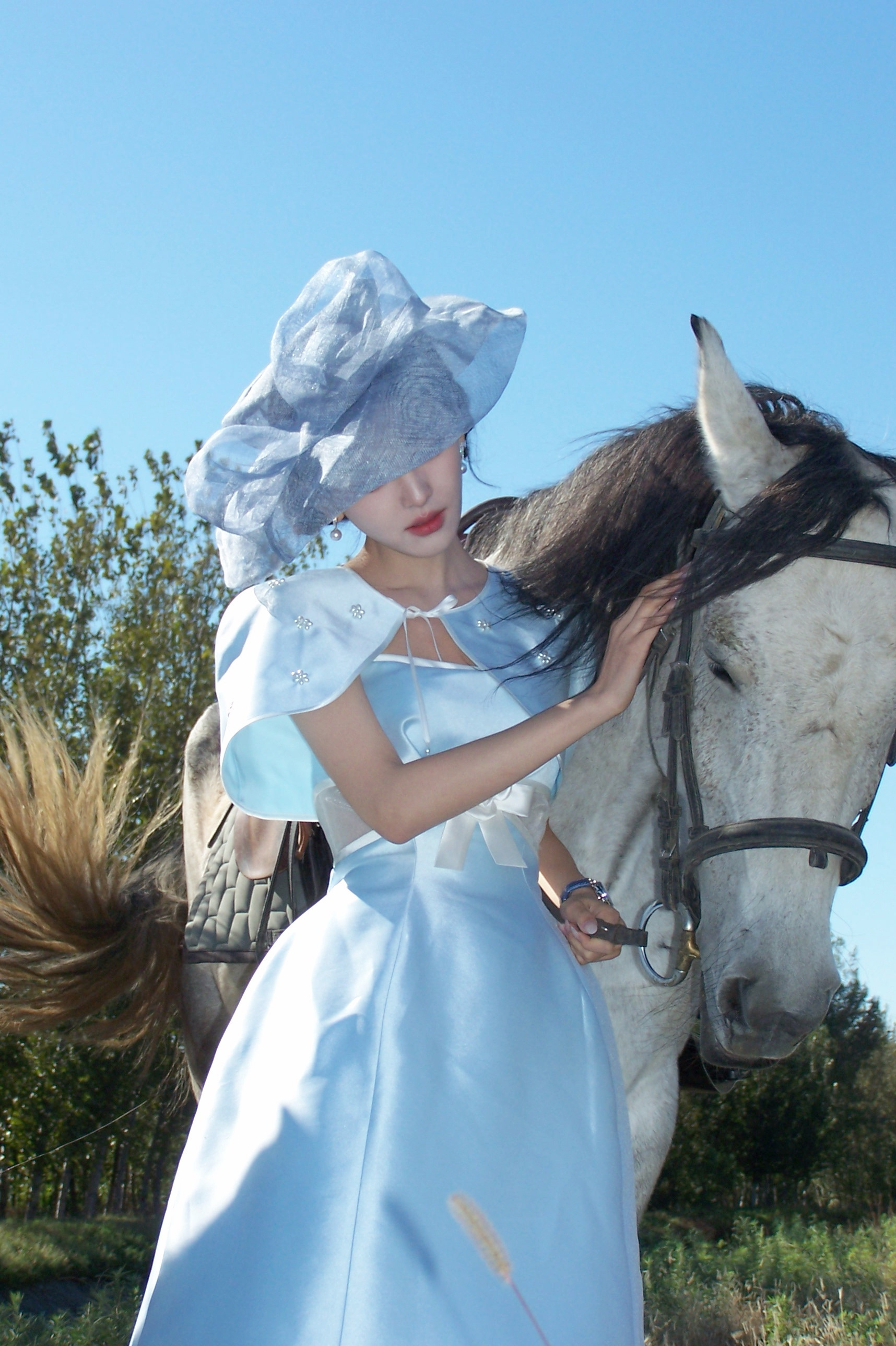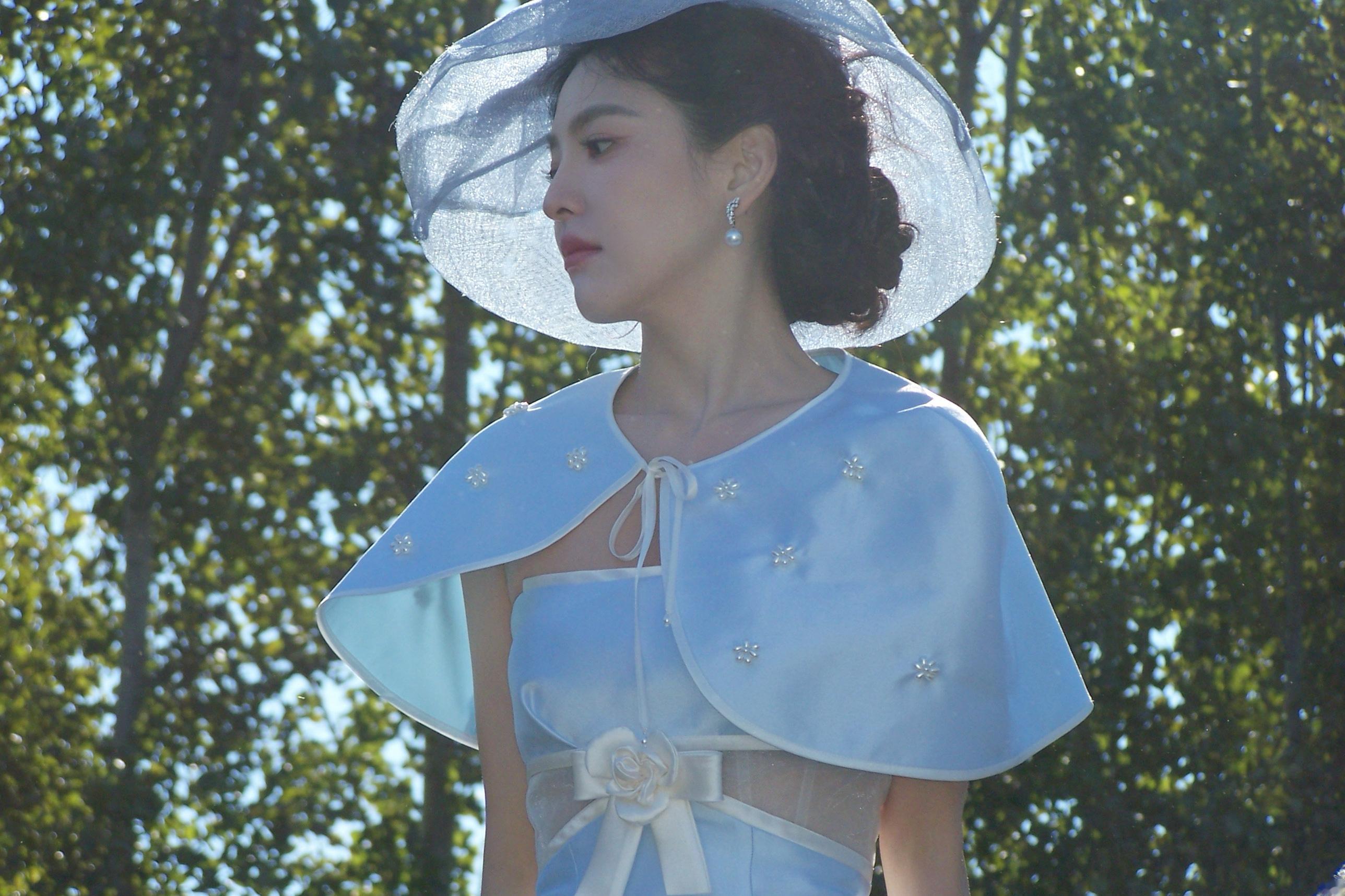 章若楠蓝纱礼帽轻覆发,浅衫裁就旧时华。她自民国风里来,携一身月光,把岁月的精致