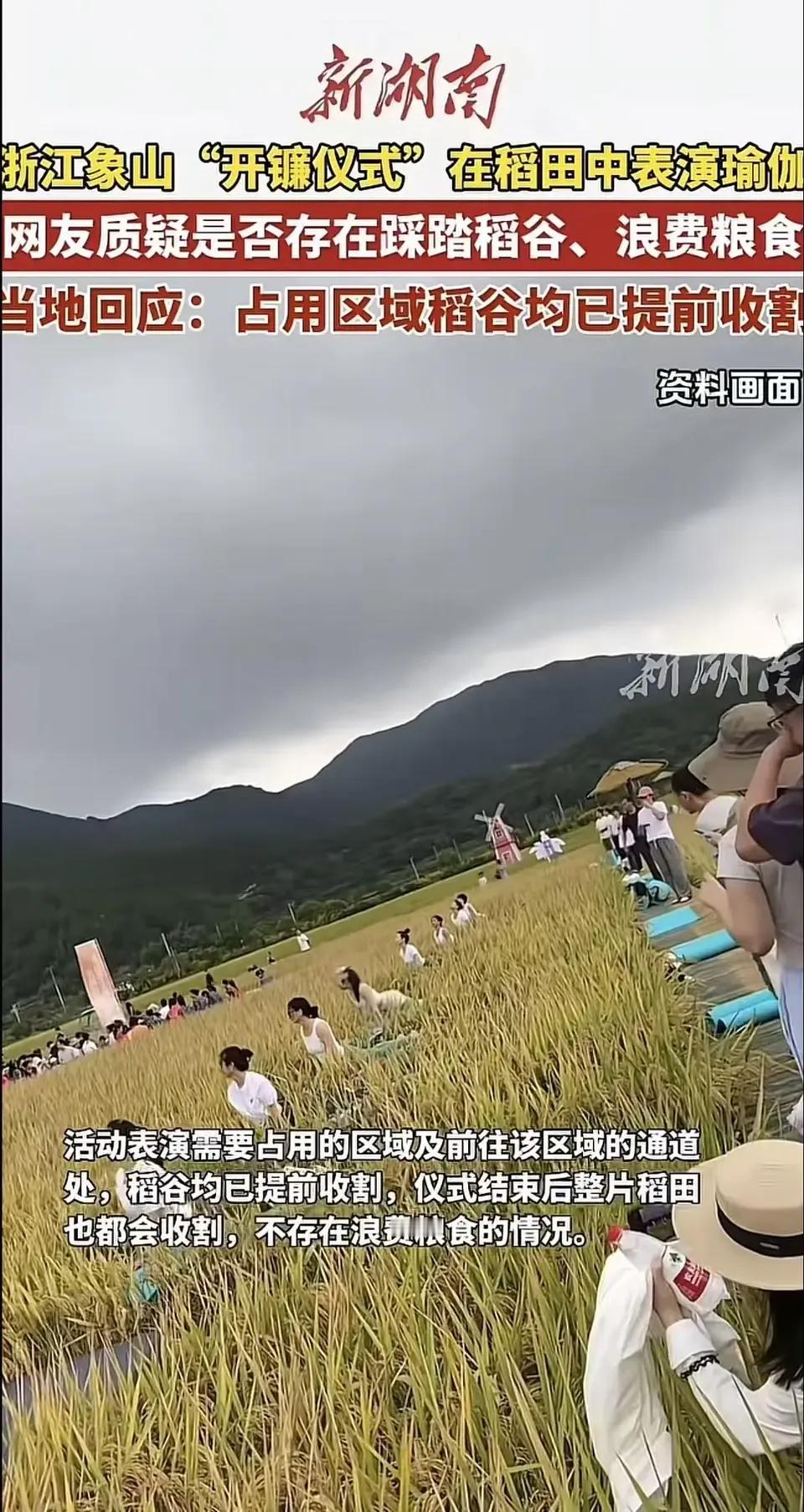 10月18日,宁波市象山县某村举办了一场“开镰仪式”。一群女生在户外稻田里练习瑜伽,还有主持人指挥节奏,路人一旁观看。 不明白这猎奇活动,除了博眼球,博流量,还有其他意义吗?这样的活动领导都能批准,还有人参加?真跟网友调侃的一样,没事可以帮农民干几天活,保证比瑜伽管用。 乌云密布,感觉要下雨了,冒雨收割又是一项大工程。女生做完拍拍屁股走人,不带走一颗稻谷,剩下农民埋头苦干。