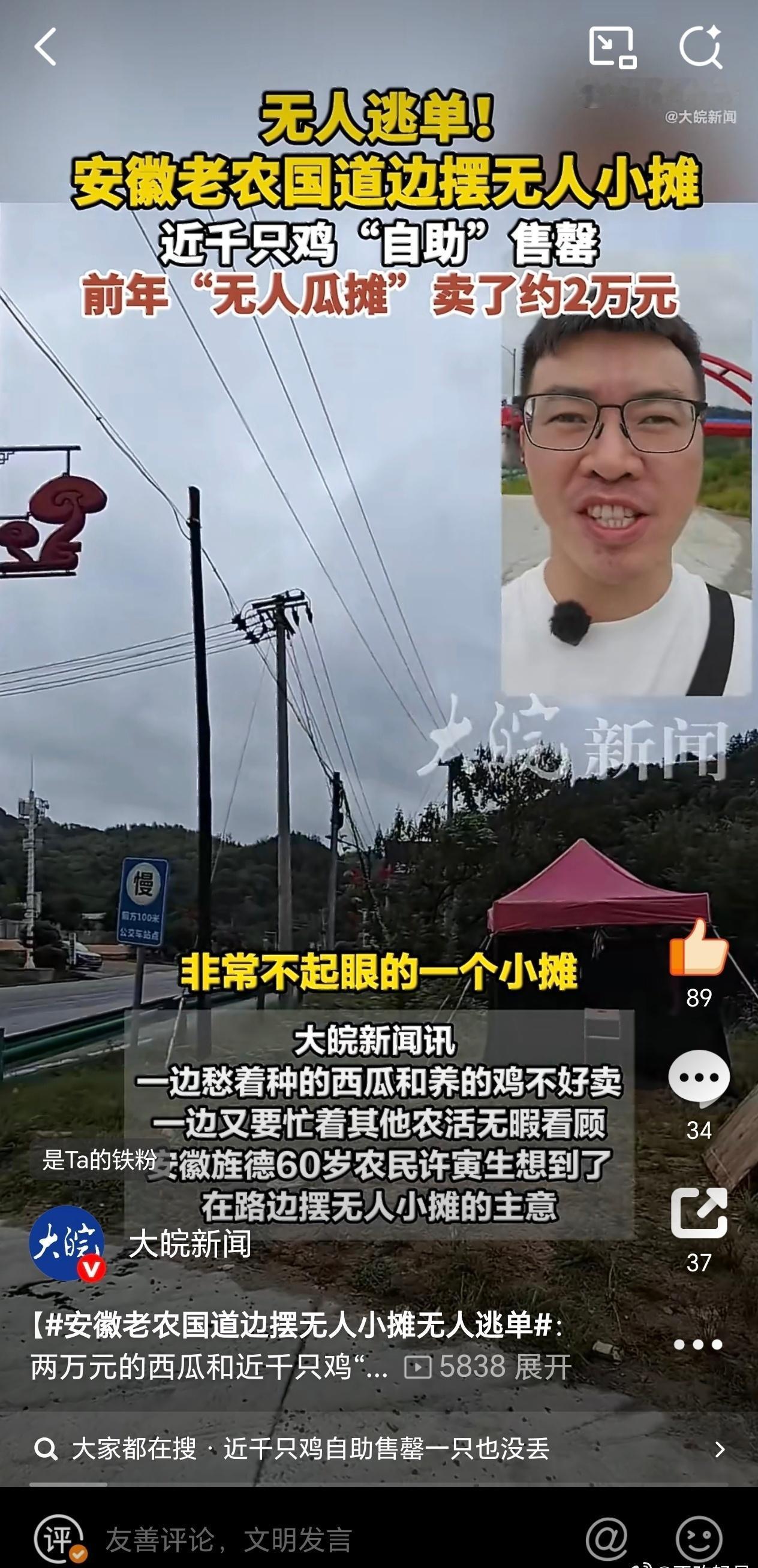 安徽老农国道边摆无人小摊无人逃单厉害了!无论是老农还是过路客,都是讲诚信的!!!