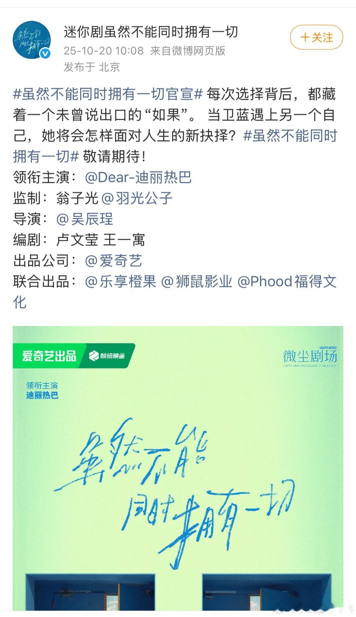 虽然不能同时拥有一切单独官宣迪丽热巴什么是迷你剧?