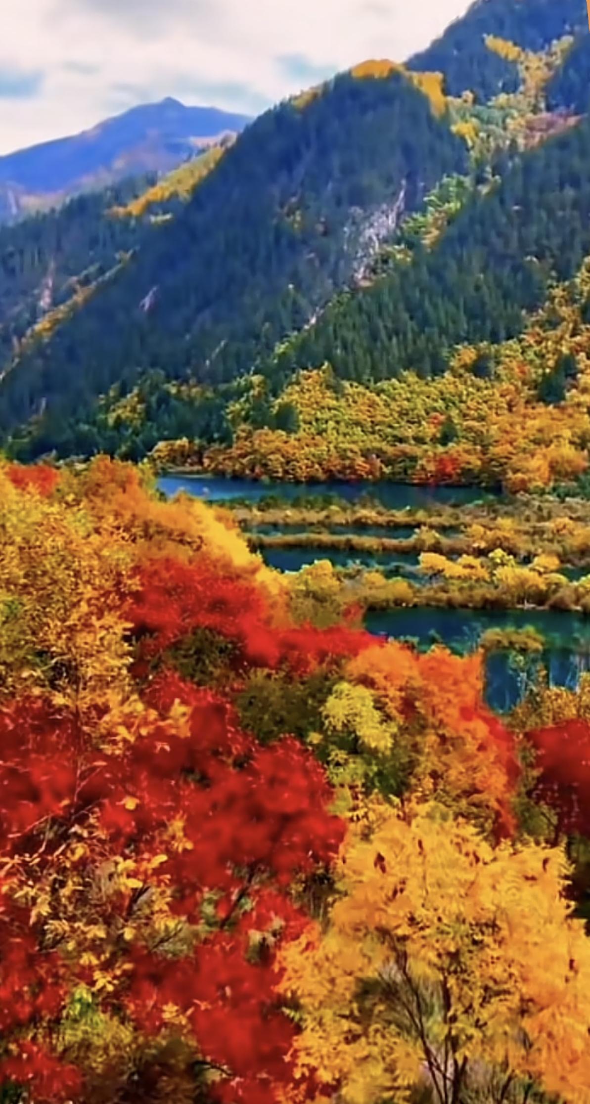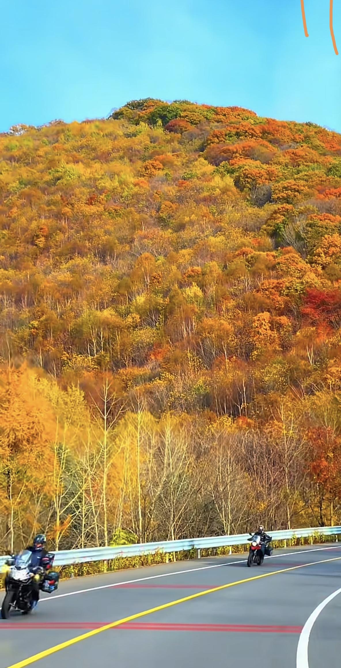 秋天的美,一张图就能定格。瞧那远山,夏日的墨绿已被秋染成斑斓。山顶苍松黛青,山腰
