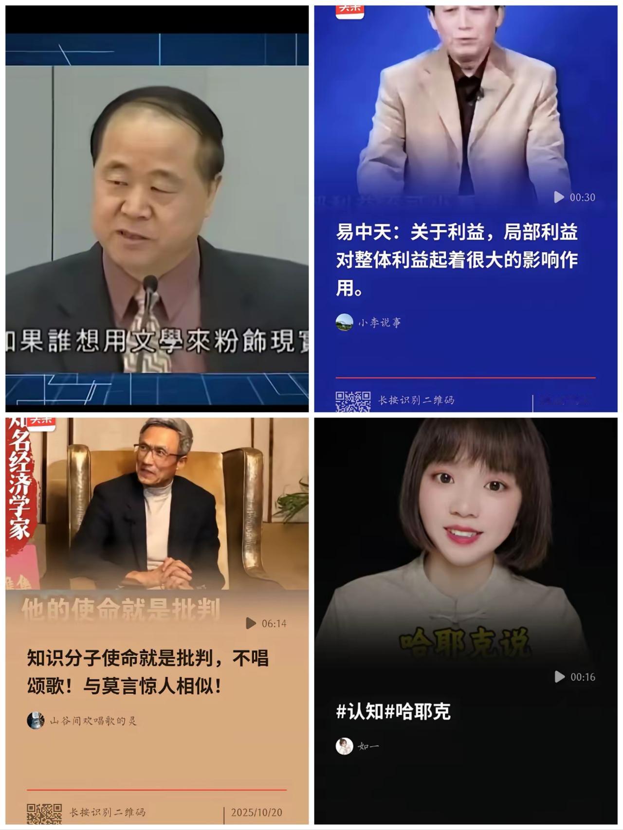 近来,不知是何人,又将一大批老公知的内容放了出来,像什么易大师、莫大师、许大师之流。这究竟在搞什么鬼? 各大平台突然涌现一批"复古网红"——多年前某些公知的演讲视频被重新剪辑后密集推送。 这些内容看似在打怀旧牌,实则暗藏玄机:发布者身份模糊,视频却呈现高度统一的叙事倾向,这种有组织的"记忆重构"令人警觉。 在当前国际舆论博弈白热化的节点,突然涌现的"历史碎片"恰似精心设计的认知迷雾,有人试图用怀旧包装来模糊是非界限,用二手观点测试舆论水温。 真正需要警惕的是,当特定历史片段被系统性地复活时,往往是在为当下议程铺设温床。 与其被动接受算法投喂的选择性叙事,我们更该建立自己的信息过滤系统。 你看这类"经典重温"背后,究竟藏着怎样的传播密码?欢迎分享你的独到见解。