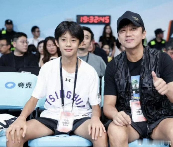 邓超和孙俪在上海体育馆看儿子打篮球比赛,夫妻俩穿着日常服饰,亲自站在场边支持儿子
