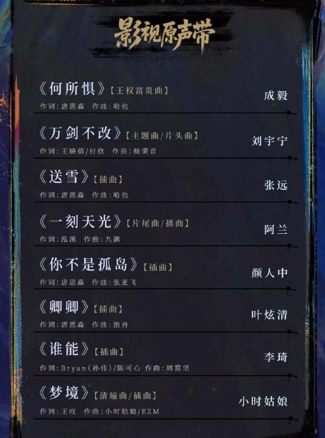 刘宇宁业务是真多 前脚刚官宣了罗云熙《水龙吟》的主题曲,后脚又官宣了成毅《天地剑