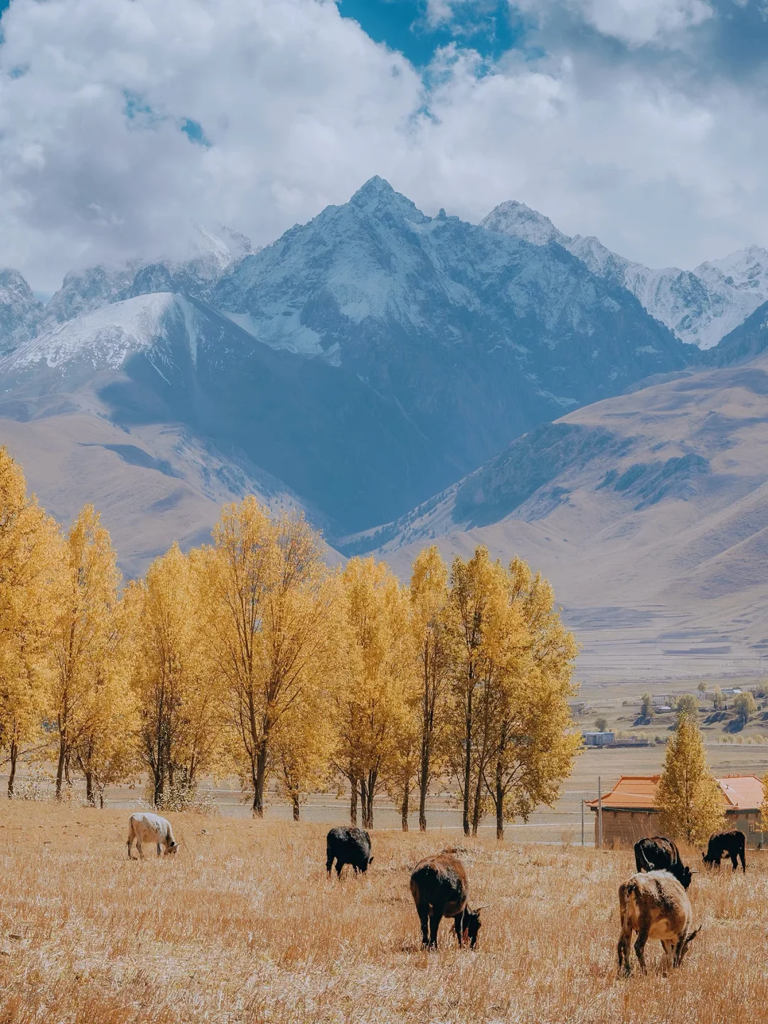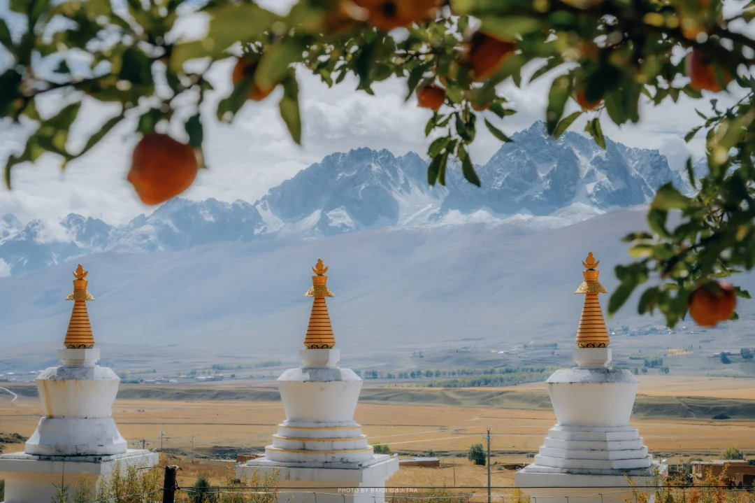 1,雪山+彩林。可能马上有人跳出来,川西有雪山彩林的地方太多了。不过甘孜县这个最特别,和川西最主流的【某某沟】不同,甘孜县的雪山下面是开阔的田园,有村庄,有河流,有寺院,非常有人间烟火气息。