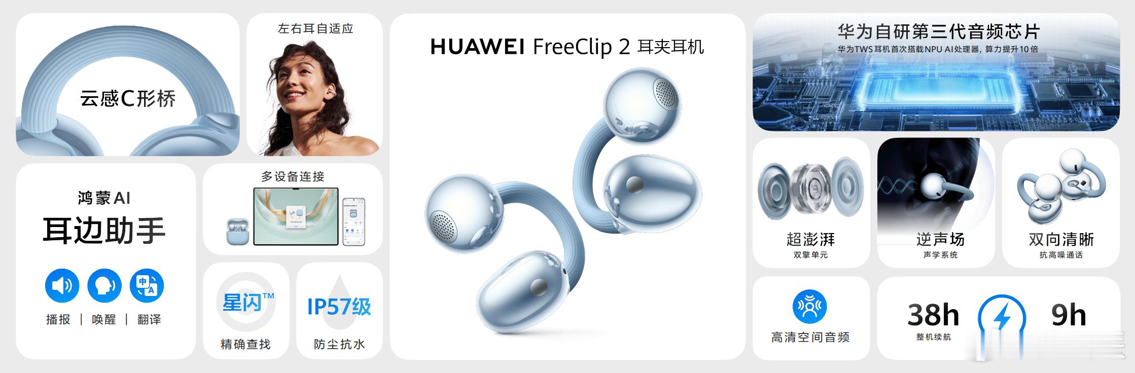我自己从华为FreeClip一代就一直在用,说实话是真的好用,最主要的是无感,甚至还能DIY成时尚单品。而这次的华为FreeClip 2不仅搭载自研第三代音频芯片+NPU AI处理器,带来“智感音量自适应”和“双向清晰通话”功能,让使用体验大幅提升;还升级了C形桥亲肤液态硅胶+高性能记忆金属结构,整体更轻盈、佩戴更稳固,喜欢的朋友闭眼入就完了。