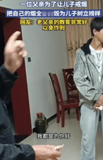 “爸爸不会害你!”10月18日报道重庆一位父亲为了让儿子戒烟,竟然一次性将自己的烟全都撕毁,纵然他已经抽了几十年,但为了儿子,他还是忍痛将烟全部撕毁,以身作则带儿子戒烟,为儿子树立榜样!网友:老父亲的教育非常好![无辜笑] 视频里桌上堆着散装烟、开封的烟盒,还有没拆封的整条香烟。儿子推门进来时明显愣住了,站在原地不知该说什么。 父亲一言不发,拿起一包开过的烟,抽出一根在手里揉碎,用力扔进垃圾桶。 接着他抓起一整盒,把里面所有的烟都抽出来握在手里,双手一用力,烟纸撕裂,烟丝纷纷扬扬撒了一桌。 原本儿子脸上还带着些许笑意,可能觉得父亲只是一时兴起,但看到父亲紧绷的嘴角和专注的神情,他很快收敛了表情,默默站在一旁。 这位父亲没有讲大道理,也没有指责儿子,而是用最直接的方式表明态度,要戒,一起戒。 生活中常见的是父母要求孩子改正缺点,自己却不愿改变,一边叫孩子少看手机,一边自己刷个不停,一边强调健康重要,一边烟酒不忌,这样的教育效果往往大打折扣。 戒烟确实不容易,既要克服身体对尼古丁的依赖,也要改变多年的习惯,但如果家人能共同面对,这个过程会变得更有希望。 这位父亲撕掉的不只是香烟,更是自己多年的习惯,这份决心本身就具有说服力。,整个视频中,最有力的是父亲的动作,果断、坚决,没有犹豫,他通过行动传递了一个明确的信息,这次是认真的。 这个场景被上传后,迅速引发了网友讨论: “这老爷子是条汉子!说撕就撕,眼睛都不带眨一下的,几十年烟龄说戒就戒,就冲这股狠劲,儿子要是不跟着戒都说不过去。” “看得我鼻子一酸,我爸当年要是也这样,我可能早就把烟戒了,他都是嘴上说说,自己照抽不误,我哪能听进去。” “评论区说没用的,怕是没真正想戒过,戒烟关键看决心,老爹都把态度摆到这地步了,当儿子的要是再抽,自己心里那关都过不去,这叫破釜沉舟!” “方法管不管用另说,但这份心太珍贵了,‘爸爸不会害你’,这句话分量太重了,是多少父母的心声,但能用这么硬核的方式表达出来的不多。” “作为两个孩子的妈妈,我特别赞同这种教育,你天天让孩子别玩手机,自己却抱着不放,孩子能服气吗?父母就是孩子最好的镜子。” “哈哈,我能说我关注点有点偏吗?那一桌子烟可都是钱啊,老爷子这回是下血本了!佩服!” “戒烟成功的人过来冒个泡,头三个月最难熬,有家人一起互相监督打气,成功率真的高很多,祝这对父子都能成功!” 您觉得这位父亲“撕烟明志”的做法,能真正帮儿子把烟戒掉吗? 官方信源:国家卫生健康委员会