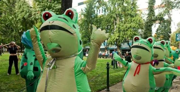 美国17个州“造反”,700万民众走上街头,特朗普举动很不寻常 事情发生在2020年,10月18日那天,美国好多地方 Leute 爆发了“不要国王”集会,反对川普,规模很大,大概有七百万人,到处都是人。他们穿着很奇怪,都穿着充气服装,特别是青蛙,拿着青蛙标语,看着挺滑稽的。 这事儿啊,跟川普政府的移民政策有关,尤其是在波特兰,这个城市有点特别,叫做“让波特兰保持怪异”,鼓励大家做自己,六月份就搞过一次“不要国王”集会,那时候示威者跟联邦人员打起来了,川普还威胁要派军队过去。有个叫塞思·托德的人,穿着青蛙服抗议,被警察喷了辣椒水,视频网上火了,青蛙就成了反抗的象征,叫“波特兰自由蛙”。后来就有了“充气行动”这个组织,免费提供充气服,帮助大家抗议。 大家觉得,这样滑稽的装扮,能削弱对立情绪,讽刺政府,也能打破川普政府说示威者很暴力的说法,展示幽默,青蛙象征着非暴力抗议。集会前,青蛙服都卖光了,亚特兰大集会也有人穿青蛙装,强调非暴力,还有人扮成恐龙,卡通人物,说“这里不是战区”啊。 组织者培训了好多人,教他们怎么避免跟警察冲突,禁止带武器,德克萨斯州州长调动了国民警卫队,增加警力,集会基本和平,纽约和华盛顿警察都没抓人。乔伊·威尔逊觉得,青蛙确实是非暴力抗议的象征,阿曼达·索尔伯格-鲍恩也穿着青蛙服参加亚特兰大集会。很多人看完这个故事,估计都会去想,这种抗议方式,到底怎么样呢。