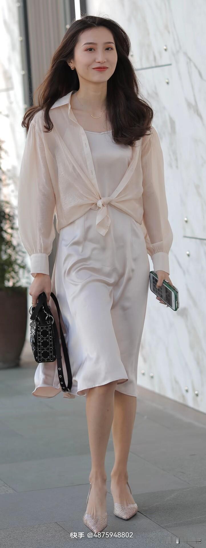 长裙 手机 春夏穿搭