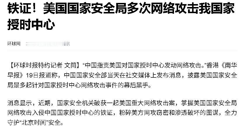 [下雨]老美亡我之心不死,竟然于深夜,趁着我们都在熟睡的时候,攻击我们的中国科学院的授时中心,也就是北京时间。 这个授时中心,联系着全国金融、通信、电力、交通和航天,甚至连普通人的转账和坐高铁都离不开它。这种基础设施一旦被外部力量操控,从股市到卫星、从地铁到电网,统统可能陷入混乱。 事情发生在中国科学院授时中心,自2022年起,美方在深夜时段悄悄发动多轮攻击,手法既多变又分工明确。 他们先通过境外平台的短信漏洞窃取工作人员的手机信息,随后又用这些数据渗入办公电脑,逐步摸清了内部网络架构。 等到2023年以后,美方直接上线了新型攻击工具,四十二款武器接连上阵,有的用来侦查,有的挖洞窃取数据,有的甚至在网络深处隐藏踪迹,普通杀毒软甲几乎很难察觉出问题。 美国专门盯上授时中心,目的是摸索整个高精度授时系统,只要能突破防线,在关键点埋下隐患,哪天真的想搞破坏的时候,只需轻轻一点,整个中国社会都会受到波及。 像月壤采集车、嫦娥飞船、北斗导航这些关键任务,都需要精确的时间和定位,一秒失误或几纳秒差错,可能就让科学成果和经济利益付诸东流。 对我们普通人生活也有极大的影响,比如高铁发车、飞机起飞时间改变,市区的红绿灯也会失去作用,交通控制中心混乱,甚至会导致列车相撞等各种事故发生。 美国做法是用国家力量系统布局,还在全球多地设服务器,把攻击来源伪装得很巧妙。他们总是用“国家安全”理由制裁其他国家,但自己却把这一套玩得炉火纯青 这些年他们还热衷在各种国际场合说中国网络有威胁、要清理中国企业,Tiktok、华为都因为这个理由被美国政府各种刁难。 而美国针对中国的网络动作从没停过,西北工大的案子、对华为的监控早有先例,只是这次目标更敏感,不仅关乎国防,连老百姓的日常都受影响。 在对抗过程中,中国有关部门早就盯紧了异常信号。最后不光截断了攻击链,还收集到了所有武器使用的证据,及时升级了授时中心的网络保护。虽然过程波折,但终究把隐患清除了,也防止了更大规模的损失。 这件事也惊醒了处于涉密岗位的工作人员,私人的手机、电脑绝不能随便存放重要信息,再普通的设备漏洞都有可能被盯上。 纵观国际局势,美国这种行为并不是只针对中国。欧洲很多国家也曾遭遇过类似入侵,网络空间已经变成新战场。 中国核心领域的安全不能有一丝松懈,否则一次疏忽就可能酿成大祸,无论是谁该都该认识到网络时代的危机是现实存在的,不只存在于各种黑客电影里、 这此事件不仅是一次安全防卫,更是对网络主权的积极维护。每个身处数字社会的人,都该为这道高墙多加一块砖,让我们共同守牢自己的安全底线。