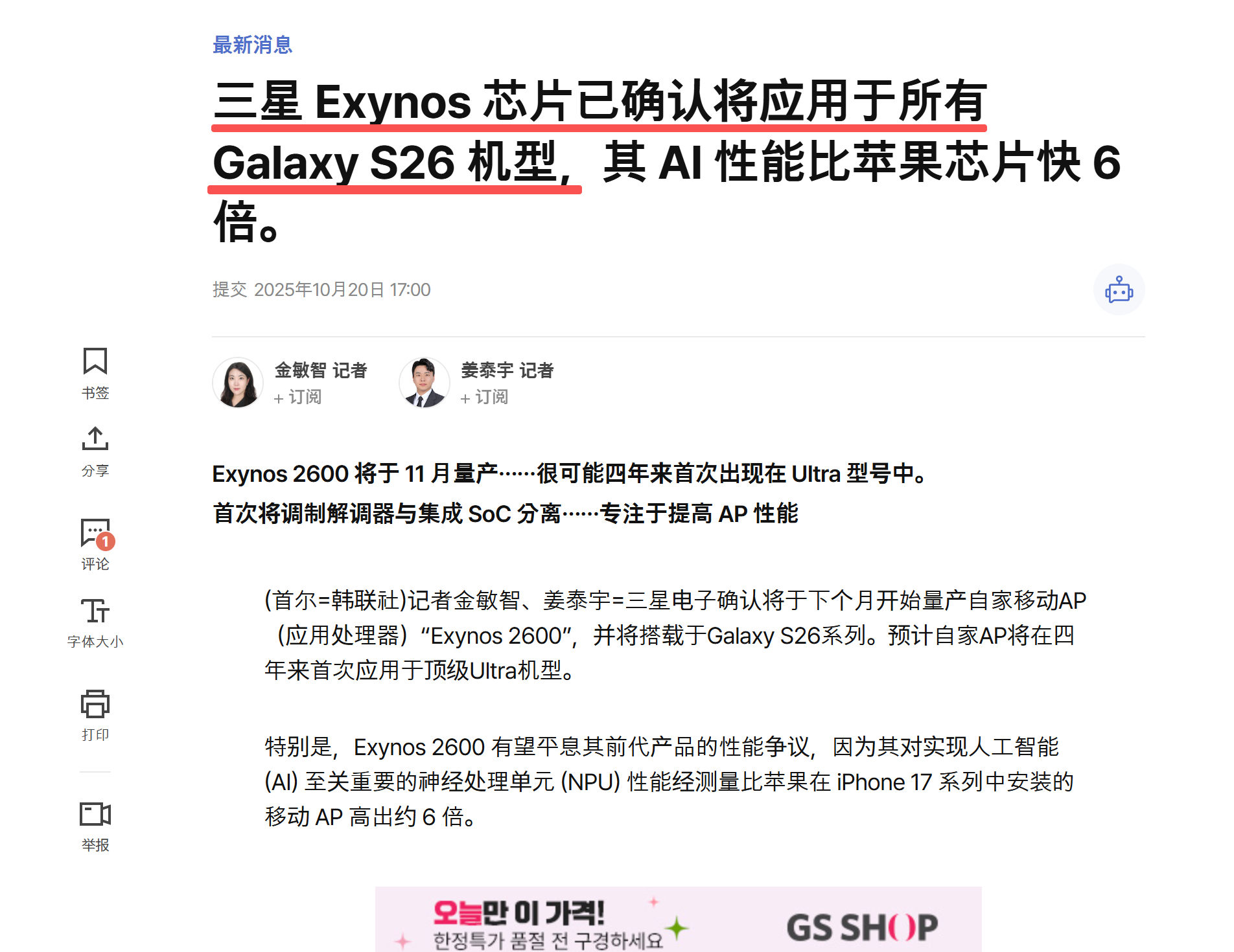 Galaxy S26 系列全系采用 Exynos 2600 (预计中国美国除外)