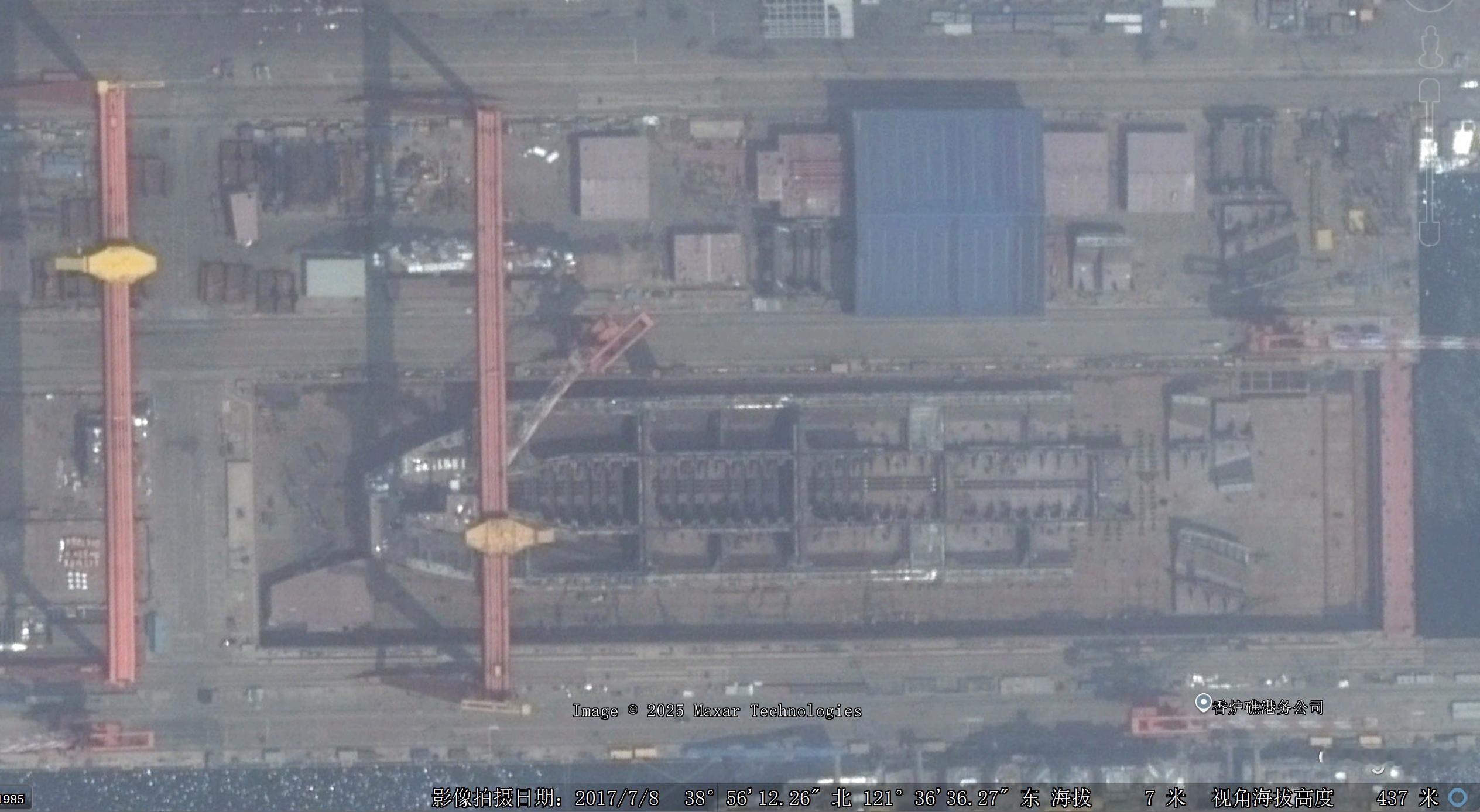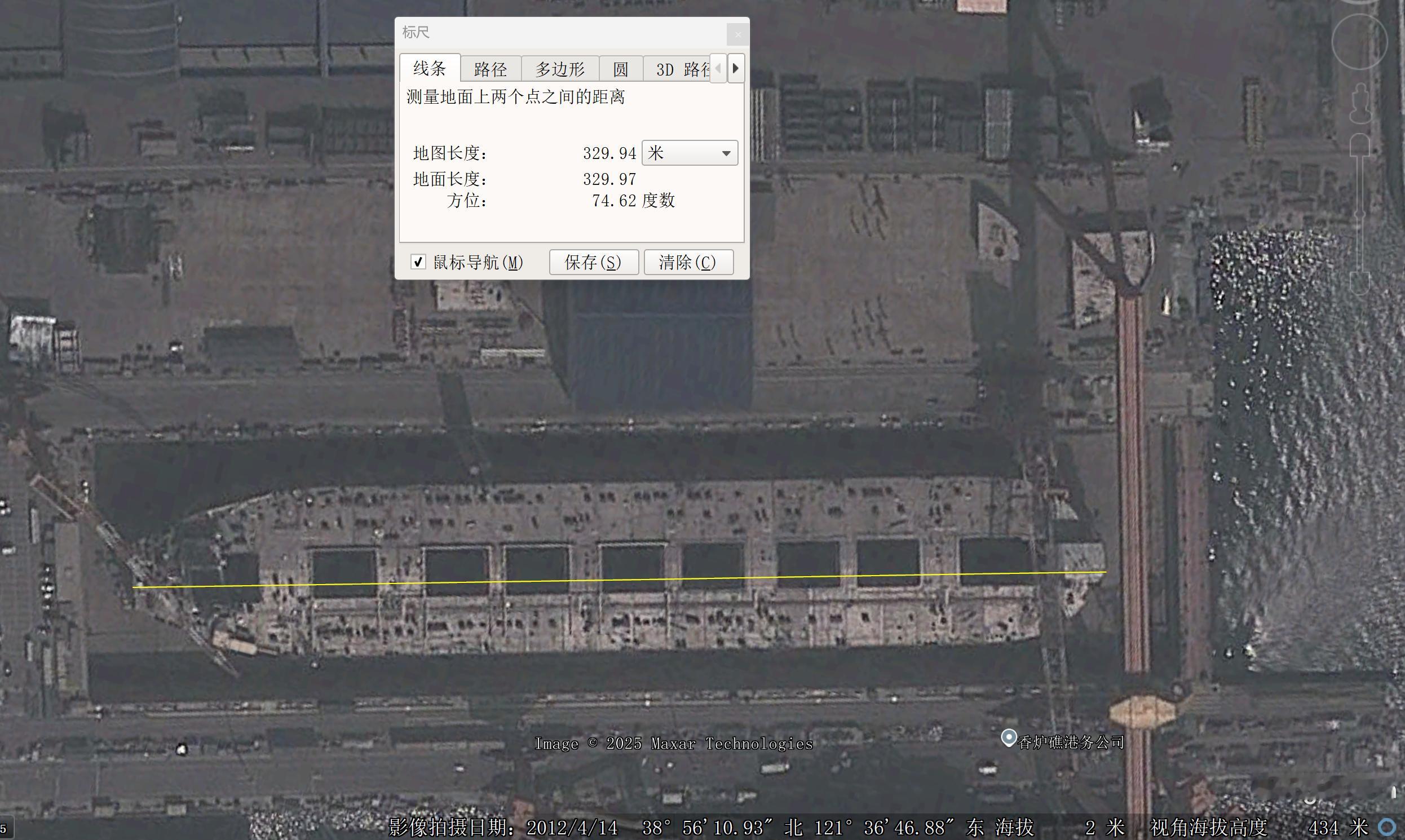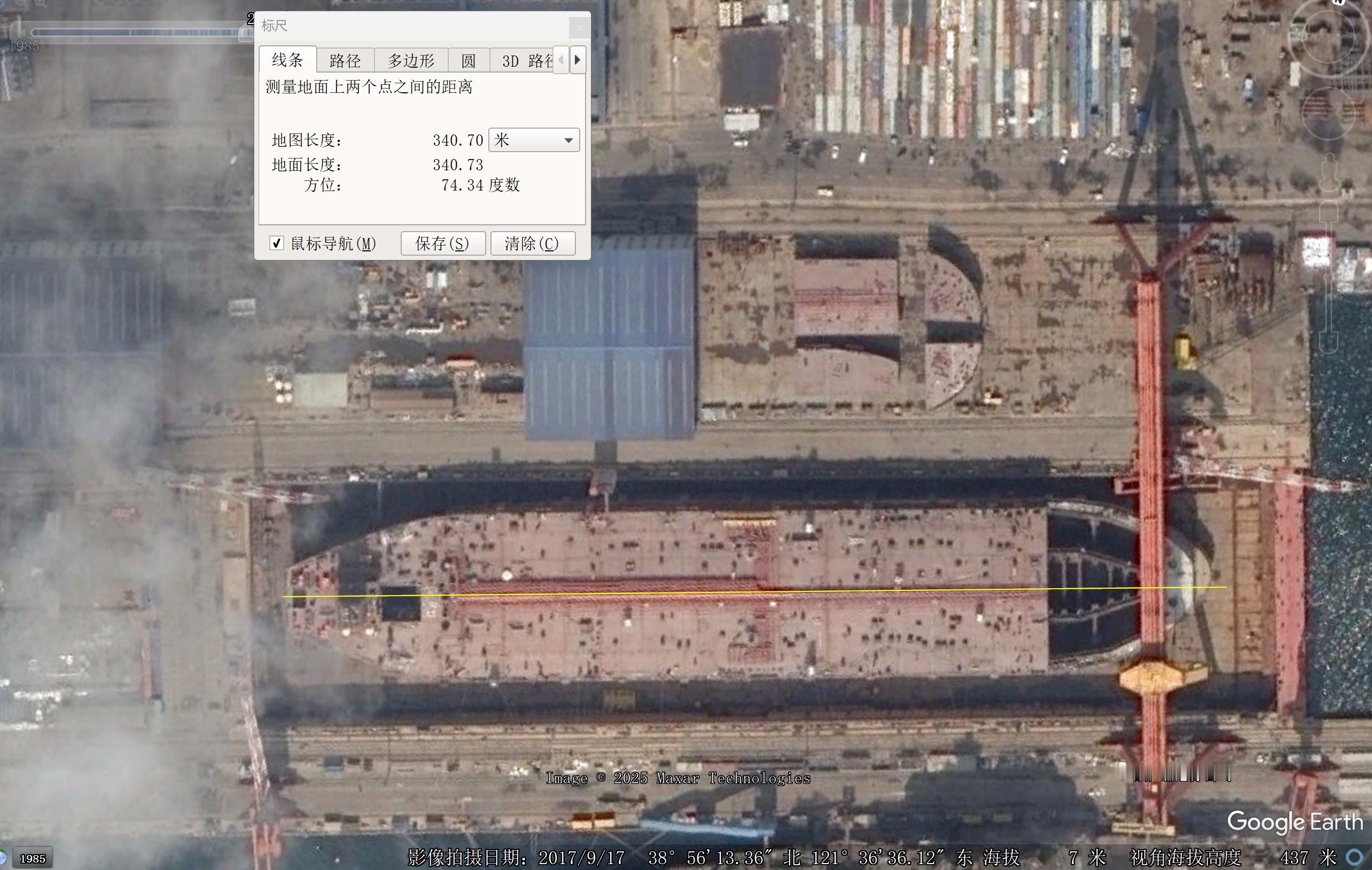 在002入坞前,也有一艘大型民用船舶进过香炉礁坞 (图7),总长预计不低于330米