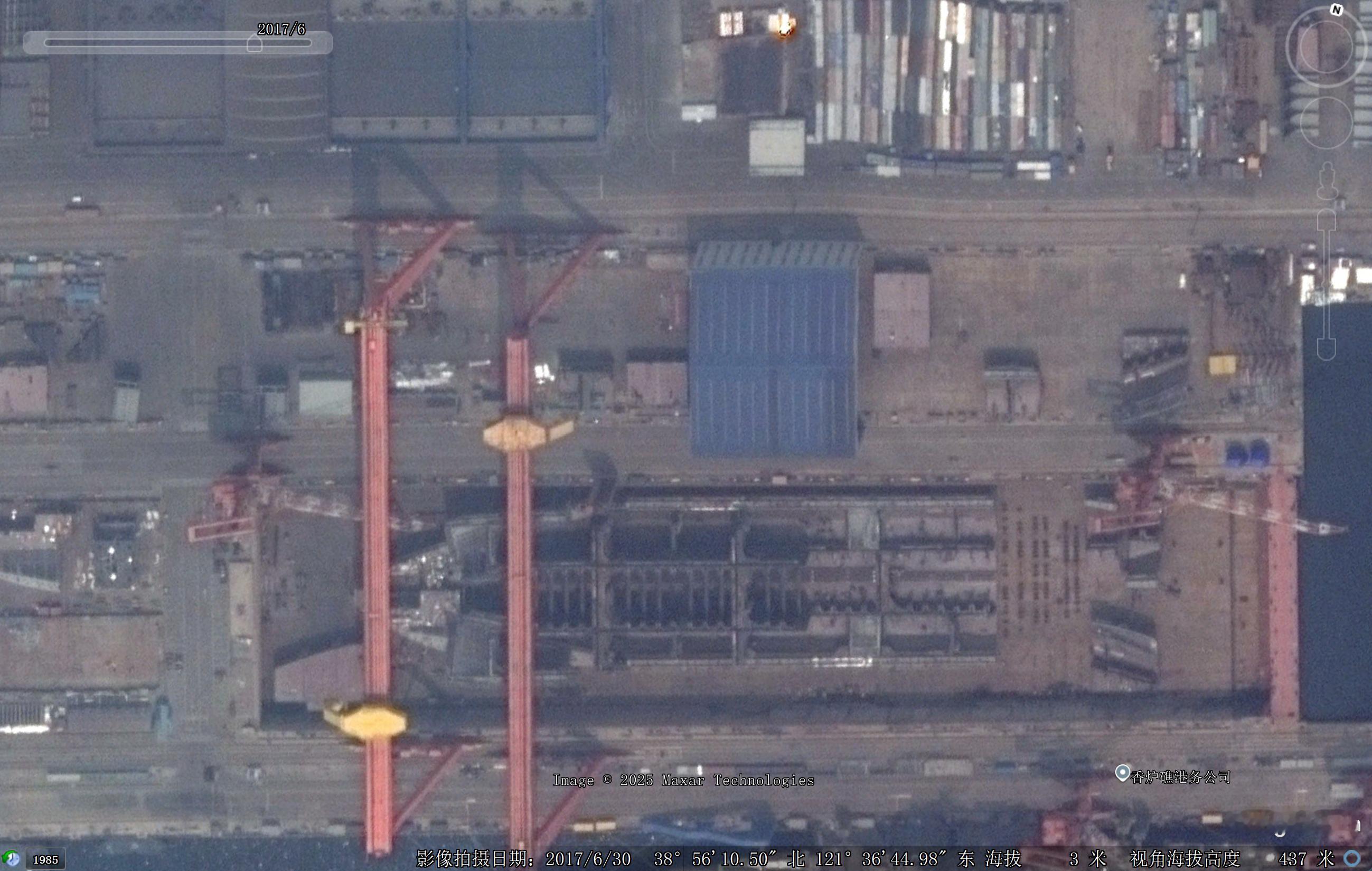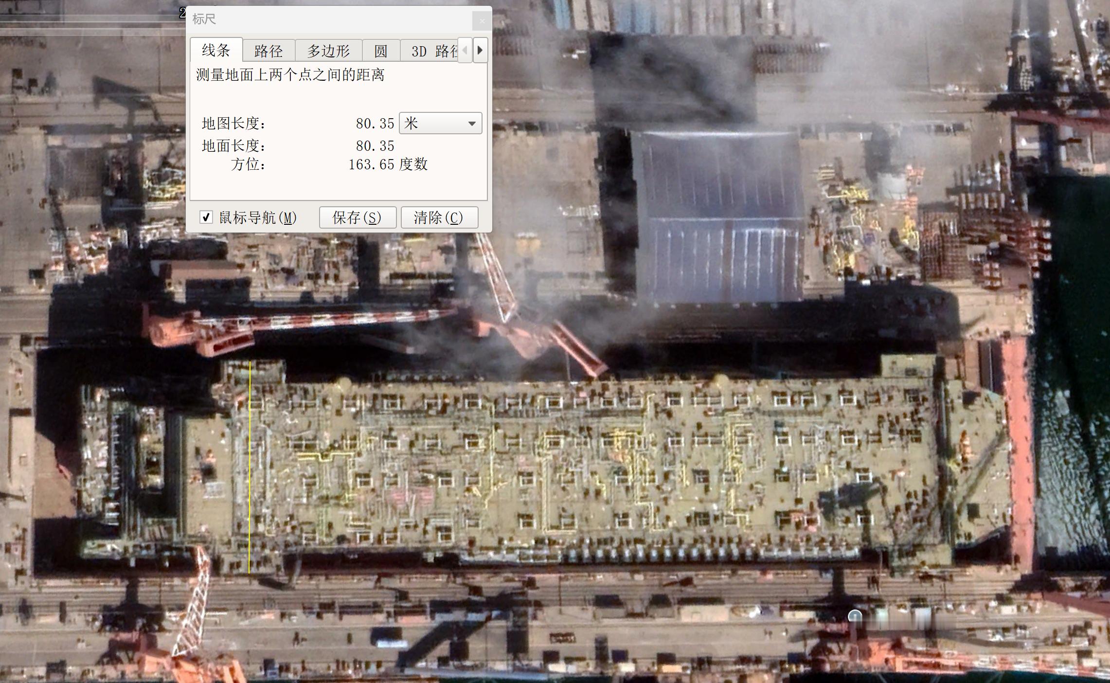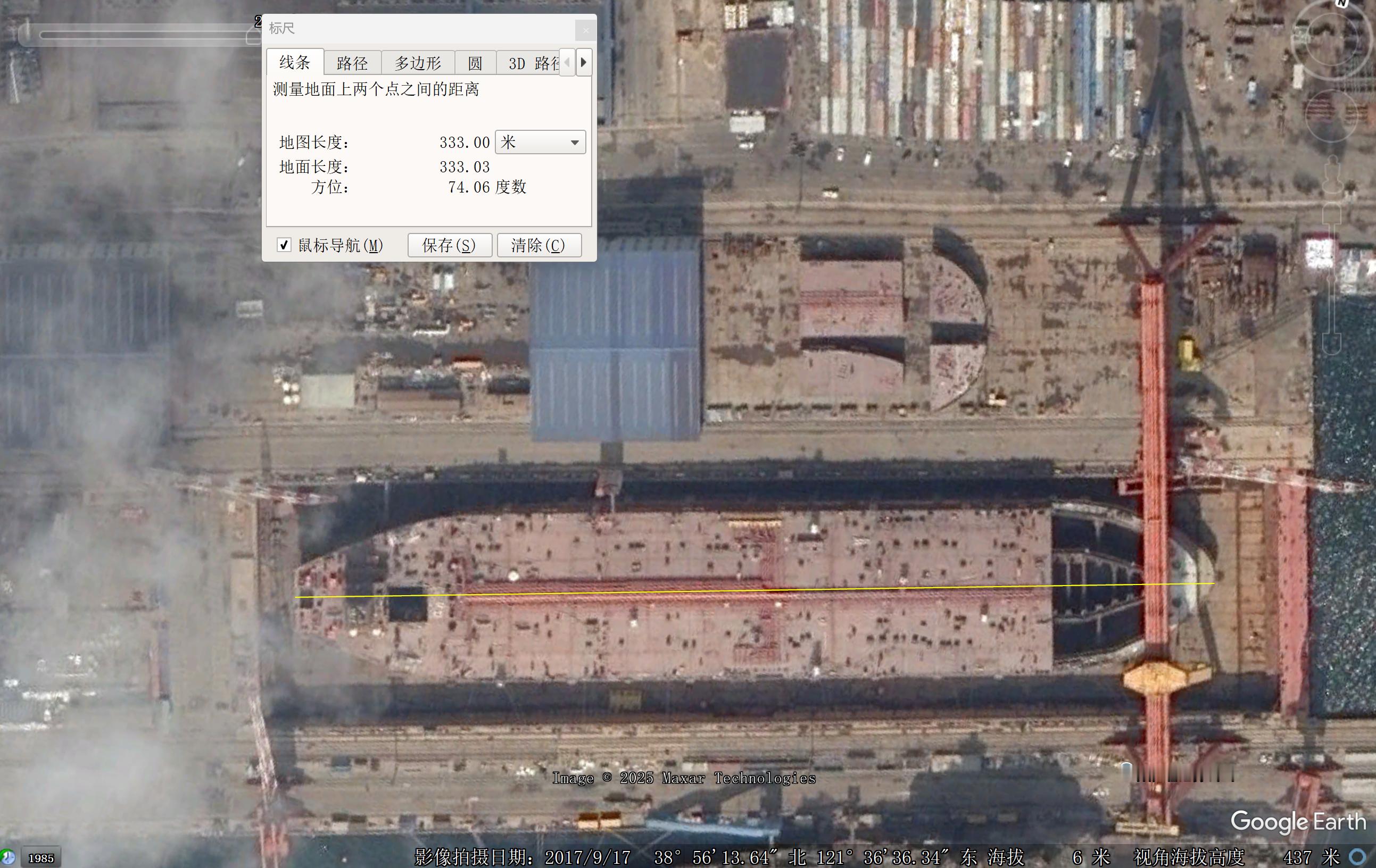 在002入坞前,也有一艘大型民用船舶进过香炉礁坞 (图7),总长预计不低于330米