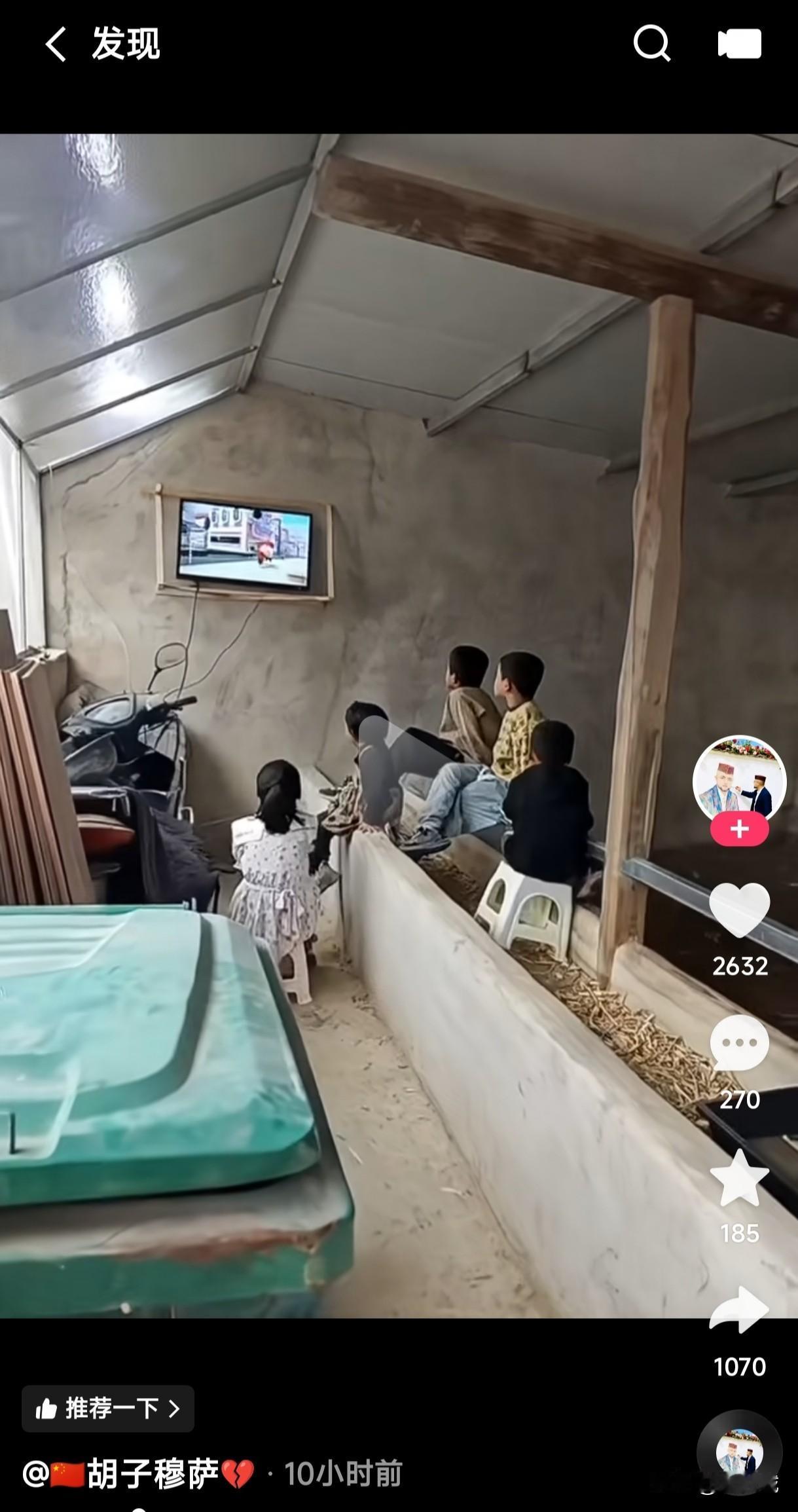 这年头人的生活条件好了 居然给羊也装上了电视放动画片 这是让羊也跟着时代的步伐前进吗 第一眼看到几个孩子在圈里看电视 结果画面反转后 原来在羊圈里看动画片 孩子们在前面看 羊群在后面看 这羊的待遇这么高级了吗