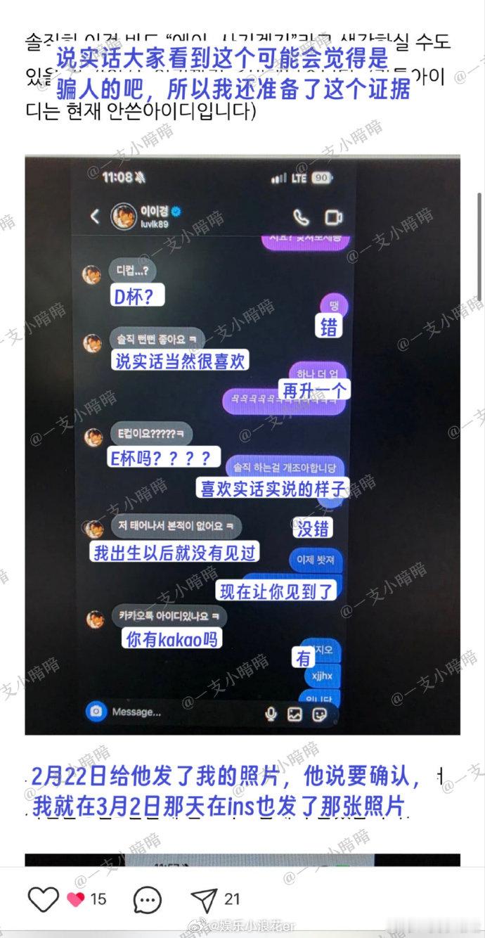 李伊庚方否认塌房李伊庚方声明有韩网友爆料《请和我的老公结婚》李伊庚塌房,晒出了