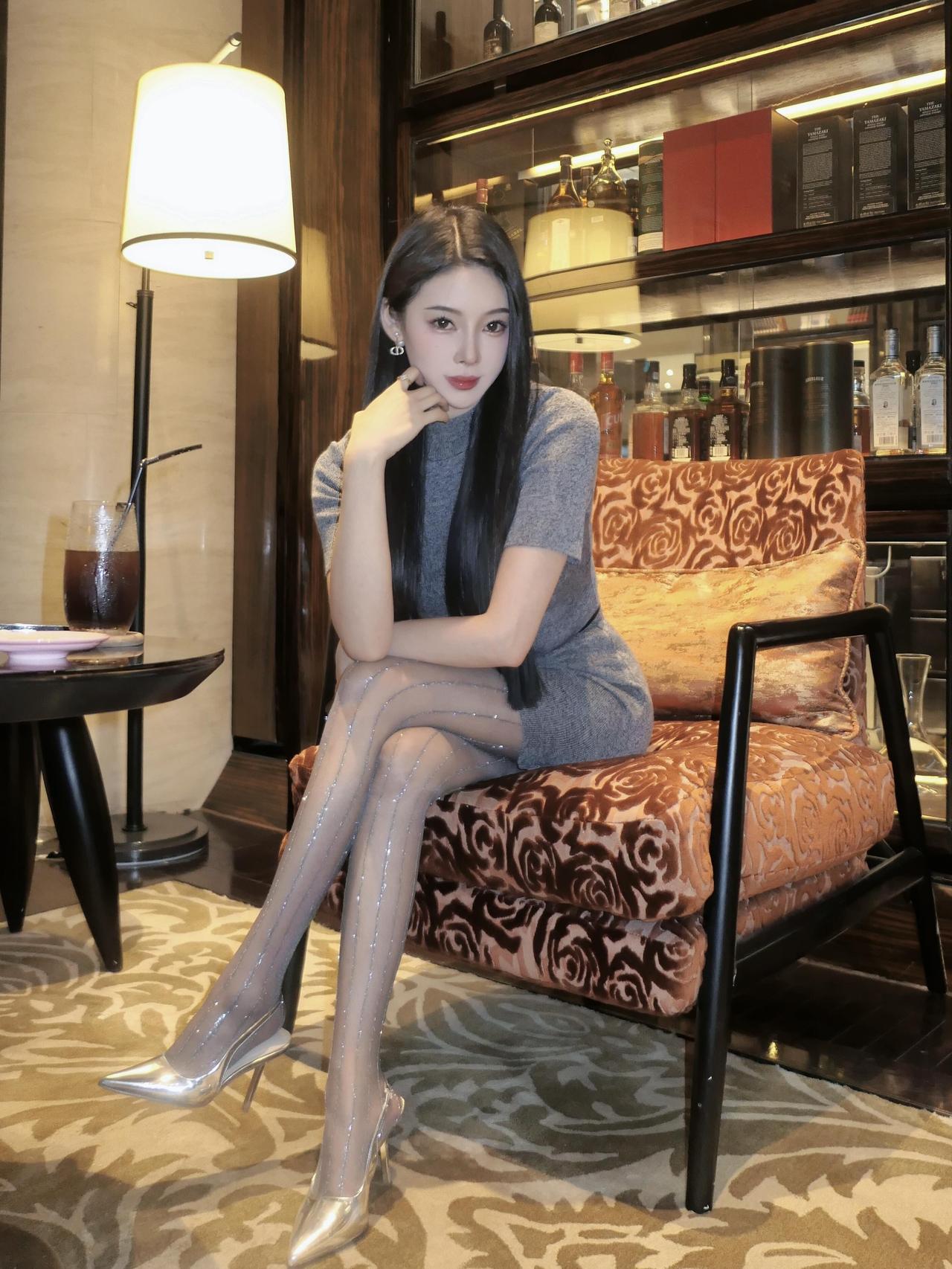 灰色包臀裙搭配灰色条纹袜和银灰色鞋子,包臀裙太修身了,加根腰带增加层次感,简约又不失时尚感。穿搭 为什么漂亮女生都爱穿短裙 性感 好身材性感女神灰色吊带包臀裙