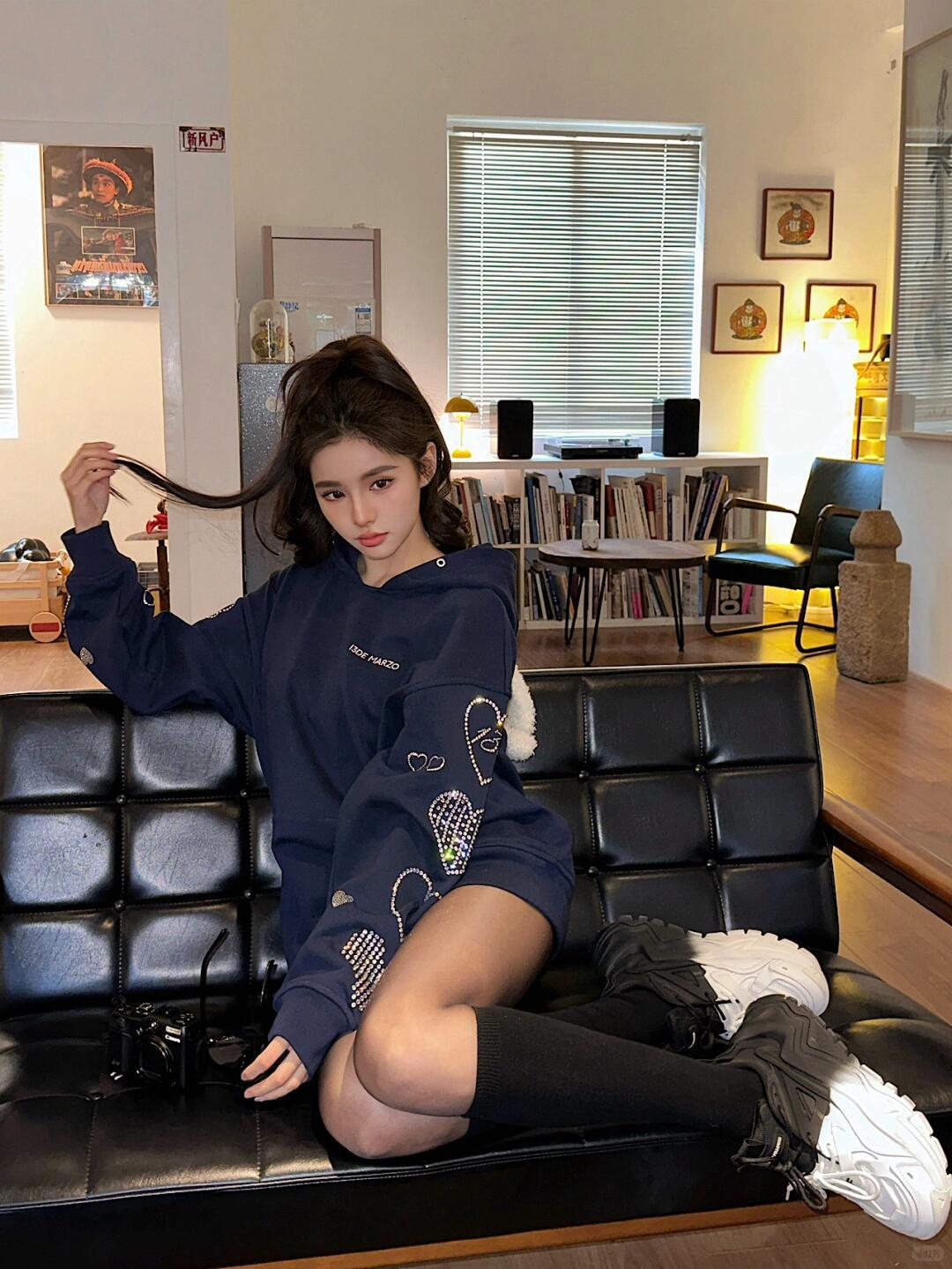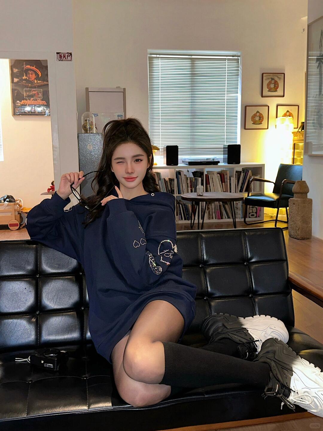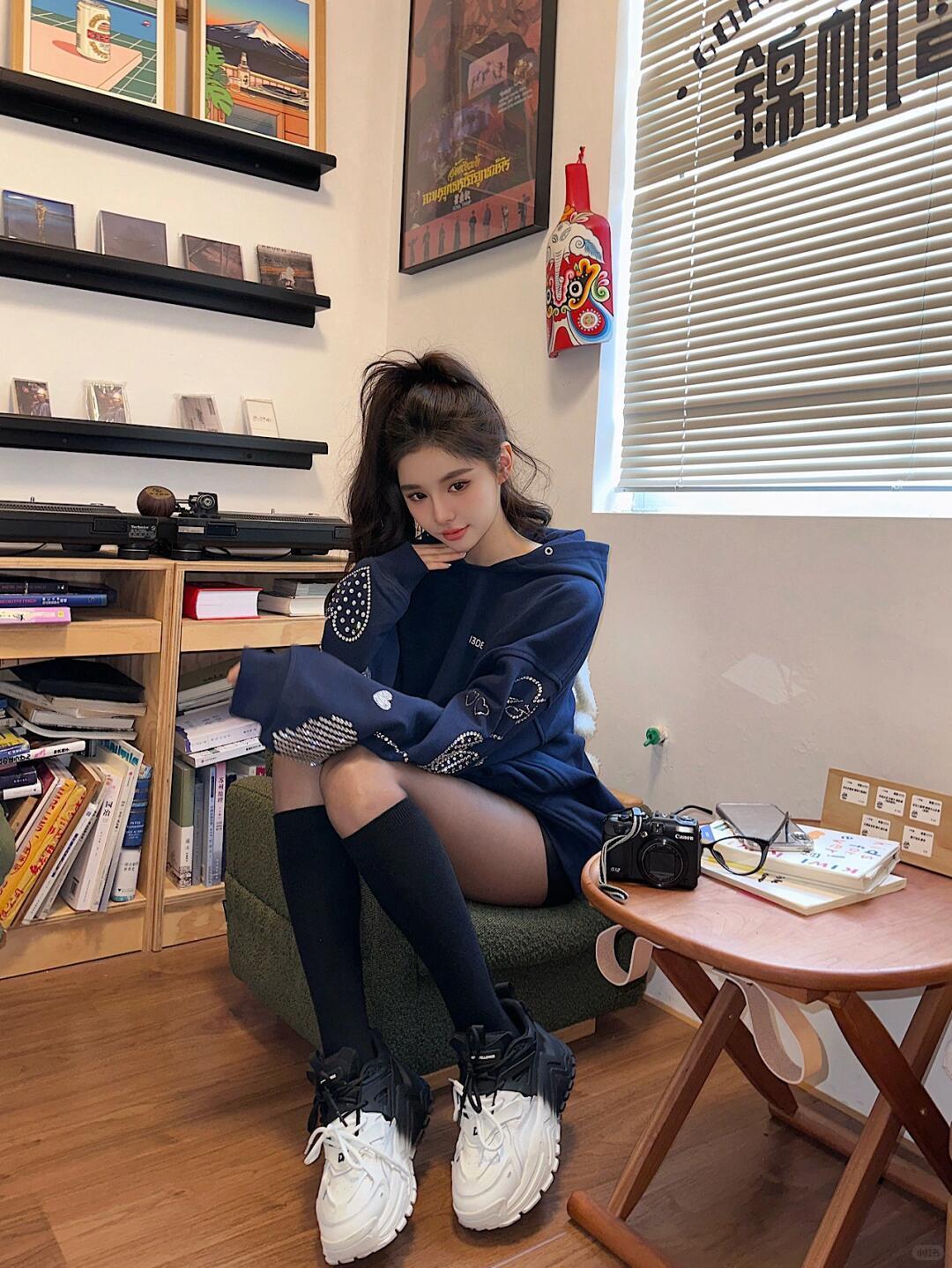 卫衣搭配黑丝袜,这组合把简约时尚发挥到极致。宽松深蓝色外套下摆过臀线,搭配微透黑丝,保留质感,日常也能穿出高级感。 穿搭 丝袜搭配 日常丝袜穿搭 黑丝酷穿搭