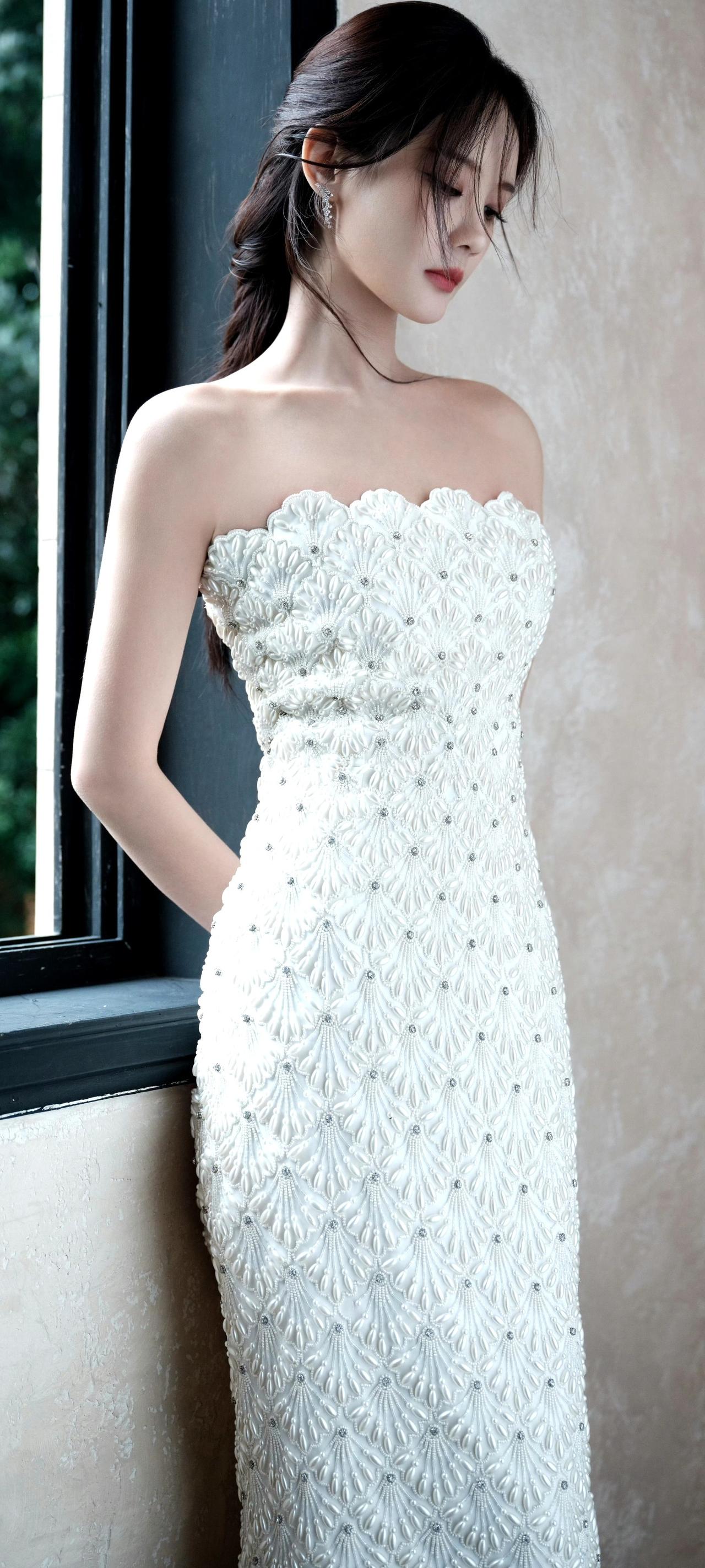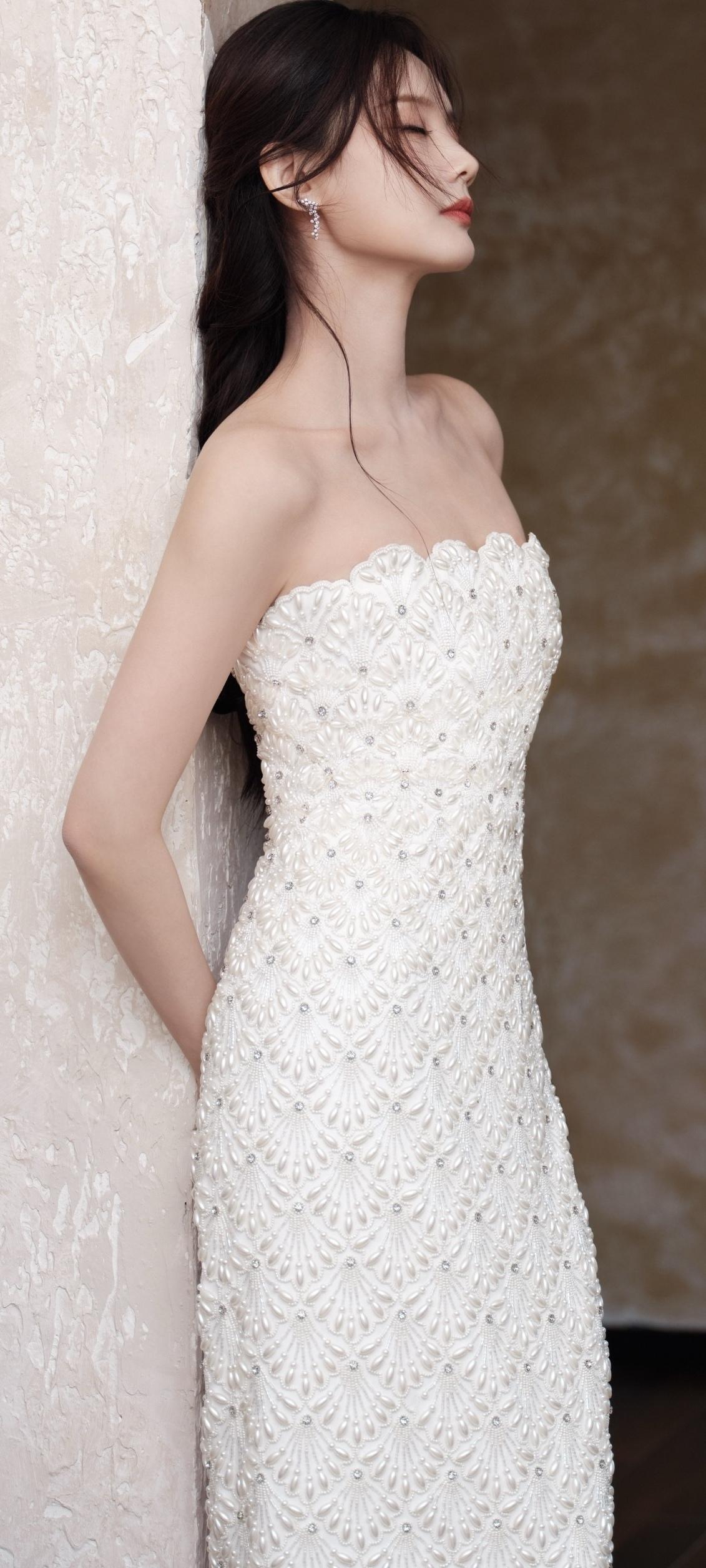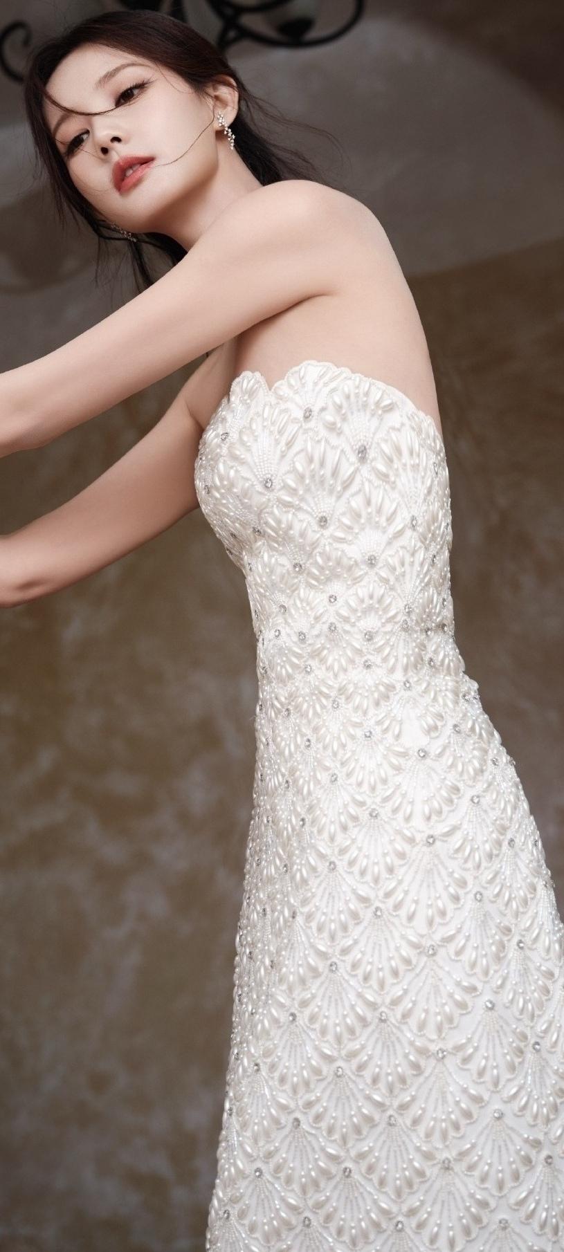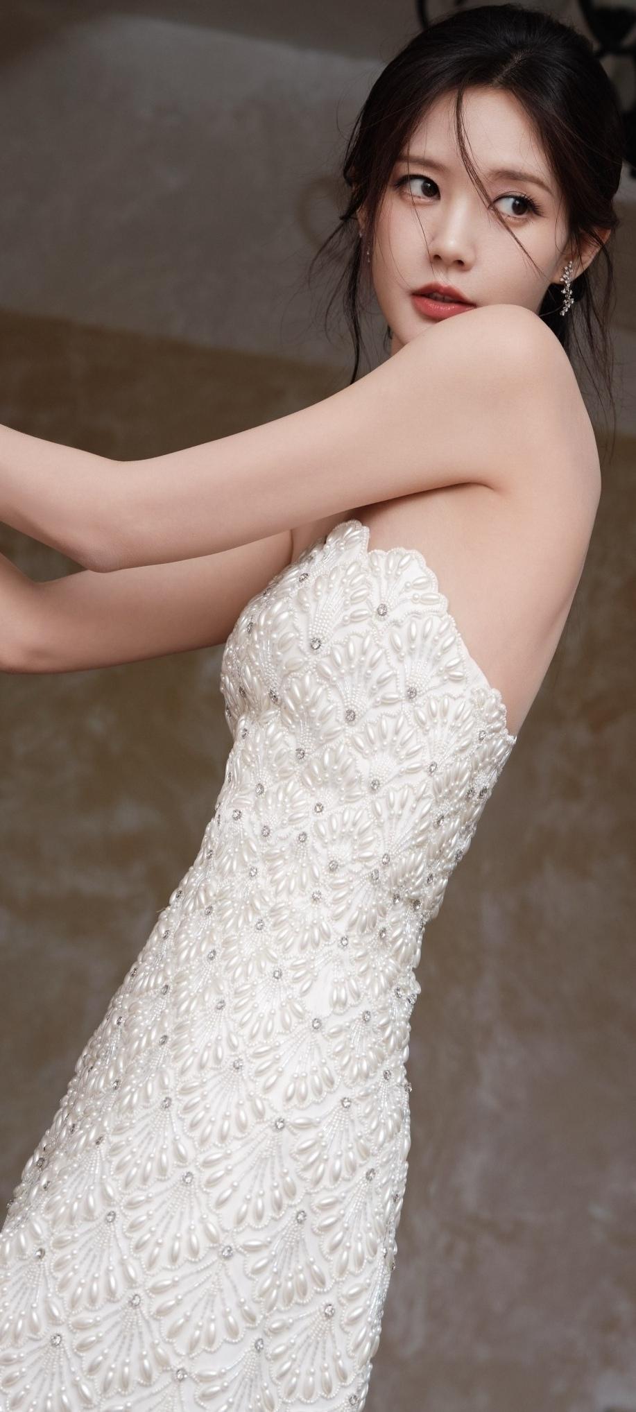 李一桐,优雅白色长裙,精致的蕾丝细节,尽显高贵气质。哪位女星最吸引你 李一桐 明星时尚 女明星