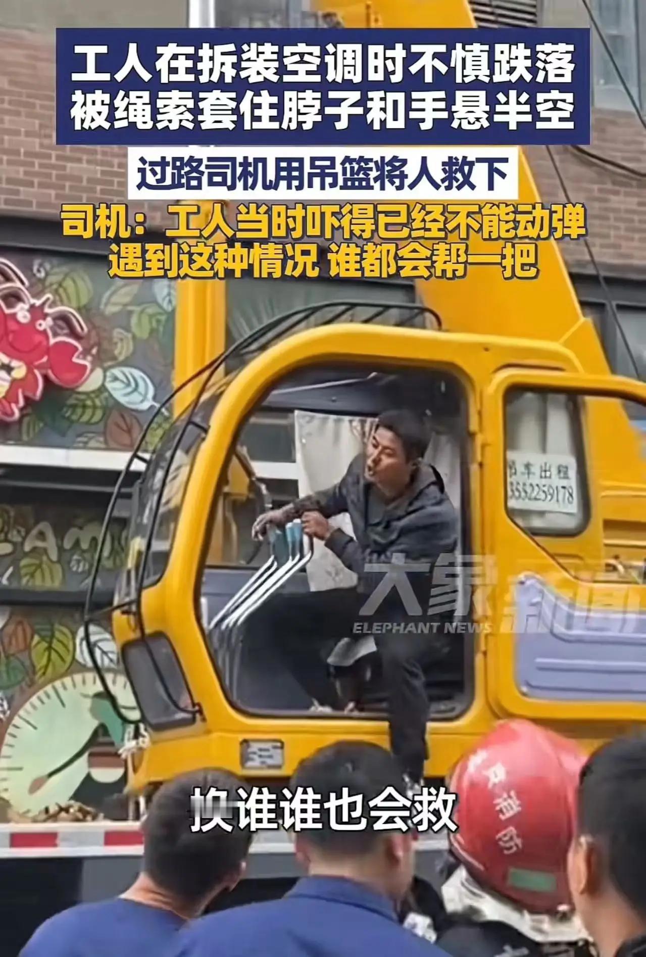 北京丰台,工人拆空调时不慎失足跌落,被安全绳索套住脖子和手悬挂半空,如果不及时施救,会被活活吊死!千钧一发之刻,群众拦下吊车救人,让人泪目! 北京丰台的这个瞬间,仿佛一幕惊心动魄的生死考验。那天,阳光正好,工人在高空拆空调,谁曾想,一次普通的工作会变成生命的考场。就在他不慎失足的那一刻,安全绳索像命运的缰绳,将他紧紧套住,却也让他悬挂在半空中,像一只被困的鸟儿,随时可能坠入深渊。 现场的气氛瞬间凝固。时间仿佛变得格外缓慢,空气中弥漫着紧张与无助。工人的双手紧握着绳索,脸色苍白,眼神中满是恐惧。那一刻,他的生命悬在一线之间,仿佛命运的天平在摇摆不定。此情此景,让每一个在场的人都屏住呼吸,心跳加速。 就在危机一触即发的千钧一发之际,一群路过的群众没有选择袖手旁观。他们用尽全力拦下了正准备操作吊车的施工队,奋力争取每一秒钟的时间。有人用身体挡在吊车前,有人高声呼喊,甚至有人徒手攀爬到吊车旁边,试图用自己的力量打破危险的死局。 他们的行动像一道闪电,点燃了现场的希望。最终,吊车被迅速停止,救援人员在群众的配合下,稳妥地将工人从悬挂中救出。那一刻,所有人都松了一口气,但心中那份震撼与感动,却久久不能平复。 这件事让我们不禁深思:在现代城市的高楼林立、繁忙的工作节奏中,安全究竟有多重要?每一次的疏忽都可能带来无法挽回的后果。而那些在危难时刻挺身而出的普通人,他们用行动诠释了什么是真正的责任与勇气。 这不仅仅是一场救援,更是一堂关于生命价值的生动课。我们每个人都可能在某个瞬间成为“拯救者”,也都应当时刻警醒,珍惜生命,关爱安全。让我们为那些在危难中逆行的英雄点赞,也希望每一个工作岗位都能多一份安全意识,少一份悲剧的发生。 生命如此脆弱,却也如此坚韧。只要我们心怀责任,携手同行,就能共同撑起一片安全的天空。因为,生命,没有第二次。安装工人坠落 装空调坠落