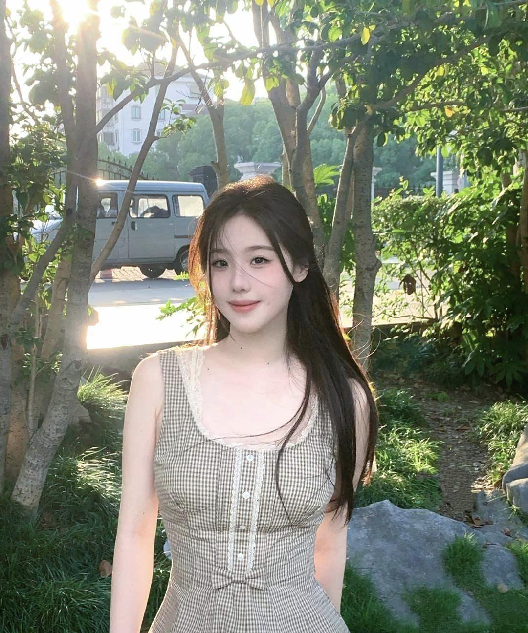 美图欣赏,看图写诗 《林间少女》 晴光过叶落格裙, 浅笑凝眸惹雀鸣。 风过发梢惊蝶梦, 一颦一顾韵无穷。 《林间的她》 路边林间的光, 碎成金箔, 落在她格纹的裙上。 她的笑,和风一起, 在树影间轻晃, 把青春的韵律, 写进了每一片叶里的张望。 图片来源于网络