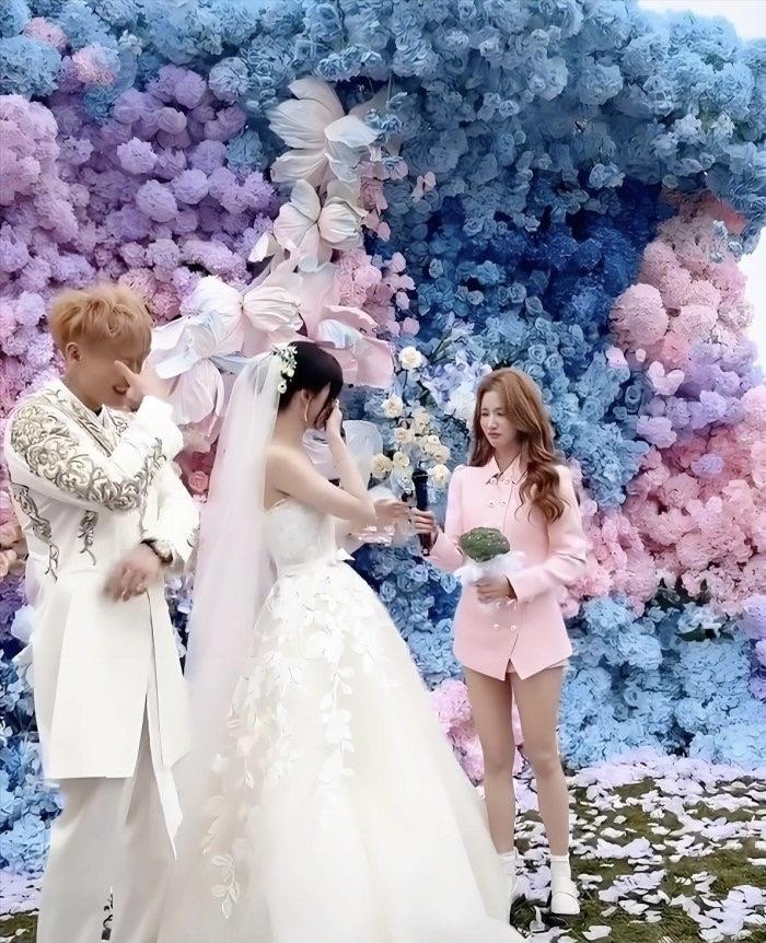 10月15日,黄子韬和徐艺洋官宣了婚纱照,紧接着第二天16日,真的直播了婚礼,不愧是wuli韬韬,结个婚都能整出这么多花样。 从礼服到嘉宾到流程,满满的都是中二少年风。 最绝的是,他真在婚礼上抛了西兰花! 礼服方面,徐艺洋之前发视频试过12套婚纱,各式各样各种颜色,曾被一众网友吐槽都不好看,审美不行。 结果在婚礼上,徐艺洋还是选择了一套相对来说中规中矩的白色抹胸婚纱,虽然款式没那么惊艳,但她靠颜值撑了起来。 反观黄子韬,穿了一套白色刺金礼服,上衣还是长款,白色衬衫也非常西式,应该是想要贵族王子的感觉。 但怎么说呢,还不如规规矩矩来,拍婚纱照那两套黑色和白色就不错。 不过,黄毛+长款礼服虽然很中二少年,但穿在他身上居然毫无违和感。 不少网友纷纷调侃,恭喜黄毛娶到了公主! 婚礼主题叫“户外狂想乐园”,这名字一听就很黄子韬。 没有传统的接亲环节,改为了户外亲友互动派对,还设置了一个让现场嘉宾找假钻戒的环节。 你别说,这种互动游戏放在普通人的婚礼上都觉得好玩,更别说是在黄子韬的婚礼上了。 不过最吸引眼球的,还是抛花环节的设定。 新娘子徐艺洋抛手捧花,这很正常。 但黄子韬呢?他抛的居然是西兰花! 对,你没看错,就是那种绿油油的蔬菜。 据说这象征着“发财”和多子多孙的意思。 最终,姜潮成功抢到了黄子韬抛的西兰花,成为了全场第二大显眼包。 婚礼现场也是星光熠熠,来了不少两人的圈内好友。 除了姜潮,其中最引人注目的,就是徐艺洋的好闺蜜刘些宁。 早在婚礼前,刘些宁就在直播中确认会出席婚礼,并表示:“徐艺洋婚礼我能不去吗?那可是最好的姐妹!” 这话一出来,谁不羡慕这种友情啊。 在婚礼现场,刘些宁真的是哭着送祝福,说黄子韬抢走了她最好的朋友,两位姐妹一对视,眼泪就双双控制不住了。从《创造营》到现在,徐艺洋和刘些宁的友情是装不出来的。 当年的成团夜,刘些宁成团而徐艺洋出局,刘些宁在台上爆哭的名场面,至今仍是双方粉丝心中的意难平。 但另一个重点是,刘些宁和徐艺洋哭的时候,站在一边的黄子韬在扶!额!大!笑! 说起来,黄子韬和徐艺洋的感情路也挺有意思的。 黄子韬31岁,徐艺洋26岁,两人不仅是恋人,还是老板和员工的关系。 秘恋多年,去年才大方官宣恋情。 不过,官宣后的进程就就像按了快进键。 求婚、领证、节目中各种秀恩爱,如今又是温馨欢快的婚礼。 这节奏,简直像坐了火箭。 从官宣到举办婚礼,黄子韬和徐艺洋的这一路,真的圈了不少粉。 网友们都说,看他们在一起,就觉得娱乐圈还是有真爱的。 “员工变成老板娘,建议拍成连续剧。” “让我们恭喜这对旧人。” “哥,别太嘚瑟了。” 这些网友评论看着好笑,其实满满的都是祝福。 说实话,黄子韬这种结个婚都要与众不同、把个人风格进行到底的态度,还挺让人佩服的。 有多少人能在自己婚礼这种重要场合,不顾他人眼光,完全按自己的想法来? 尤其是抛西兰花这种操作,一般人就算想到了,估计也不敢真做。 但黄子韬就敢,而且做得理直气壮,做得欢乐十足, 可能有些人会觉得,这都是炒作,都是剧本,毕竟他还在直播时让大家关注自己。 但我觉得,能把自己的婚礼变得这么有趣,这么有纪念意义,有什么不好呢? 难道所有的婚礼都必须严肃庄重,不能有半点欢乐搞笑? 黄子韬和徐艺洋的这场婚礼,让我们看到了明星婚礼的另一种可能。 不一定要多么奢华,不一定要多么正式。 欢乐、幸福、有自己的个性,才是最重要的。 这样不一样的婚礼,才更令双方难忘。 只能说,黄子韬这一路,真的没变过。 还是那个中二少年,还是那个真实不做作的黄子韬。 只不过,身边多了一个懂他、爱他、愿意陪他一起疯的徐艺洋。 最好的爱情,大概就是这样吧。 你在闹,我在笑。 你抛西兰花,我抛手捧花。