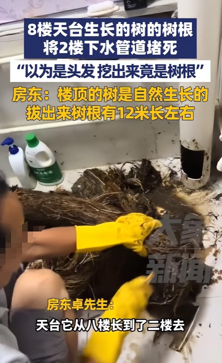 10月18日报道,广东深圳,一房东发现2楼的下水管道被堵死,本以为是头发堵得,谁知挖开一看居然是一截巨大的树根,约有12米长,严丝合缝卡在下水管道里,网友:榕树不容人![紫薇别走] 这种树根“入侵”下水道的情况,其实远比我们想象的要常见,在广西玉林,市政工作人员就曾发现民主中路两侧榕树的根系发达,它们深入下水道后交缠生长,粘连淤泥,足足占据了超过三分之一的排水空间,导致雨天排水严重不畅。 树木的根系,尤其是像榕树这类根系特别发达的植物,具有向水向肥性,它们会本能地朝着水源和养分充足的方向生长,而老旧或接口不严的下水道管道,难免会有些微渗漏,管道内长期保持湿润的环境,同时富含有机物,这对树根来说无疑是巨大的诱惑。 根系便会从管道接口、裂缝等薄弱处钻入,并在舒适的内部环境中迅速生长、分叉,最终形成庞大的网状结构,造成堵塞,深圳这位房东戴着手套,用小刀一段段割断树根,再从管道里往外掏,有些地方树根盘踞太紧,他只能一点点撬开管道接口,整个过程耗费了大半天时间。 一旦树根在管道内安家落户,清理起来就异常困难,井下空间通常密闭、空气稀薄,还可能存在有毒气体,作业人员必须配备通风设备、防毒面具等防护装备。 管道内部空间往往十分狭窄,有时仅能容纳一两人曲身工作,大型机械根本无法施展,只能依靠砍刀、手锯等简单工具人工操作。 玉林市政工作人员清理民主中路下水道时,一天只能推进十几米,他们形容那感觉就像在打“地道战”,闷热、压抑,每割断一截树根,都要费很大力气才能从淤泥中拖出来。 面对不同的堵塞情况,专业人员会使用管道疏通机,其弹簧钢丝能搅碎或拉出管道内的树根,更先进的方法是高压水射流,利用极强的水压切割、冲刷树根,并将其冲走,也有人使用特定的化学药剂来杀死树根,抑制其再次生长,但这种方法可能对环境造成污染,必须谨慎操作。 在规划绿化时,应避免将根系过于发达的树种种植在地下管网密集的区域,尤其是靠近下水道的地方,榕树、柳树、梧桐这类根系发达的树种,最好与管道保持5米以上的距离。 对于已有的树木,可以在管道周围铺设专业的根系阻隔层,有效引导根系向下生长而不是横向侵入管道,定期对下水道进行巡检和维护,及时发现并处理微小的渗漏点,也能从根本上减少对树根的吸引力。 民间有句俗话叫“榕树不容人”,说的是榕树根系太过发达,会争夺周围其他植物和建筑的生存空间,这次深圳房东的遭遇,算是给这句老话提供了一个现实注脚。 网友热评: “我家楼顶之前那棵小榕树没在意,结果根把下水道堵死了,最后只能砸墙换管子,又花钱又受罪!” “真不是吓唬人,榕树根能顺着管道长好几层楼,修起来费老劲了。” “榕树在植物界外号‘拆迁队’,别看他个子不大,根系的力量惊人,能顶裂水泥地。” “厕所、下水道常年潮湿,对树根来说就是豪华自助餐厅,它们会拼命往里钻。” “好家伙,12米!这树根是打算自己下楼溜达吗?” “房东这是无意中发现了植物的‘秘密通道’啊。” “生命力顽强值得感叹,但守住咱们自家的房子更重要啊!” 你在生活中有没有遇到过类似这种“植物带来的烦恼”?比如阳台的花草根须钻出了花盆,或者小区里的大树影响了采光甚至房屋安全?你是怎么处理的?欢迎在评论区分享你的故事和应对高招! 信源:大象新闻