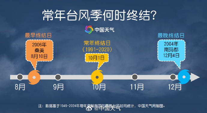 那么,今年台风季是否会就此结束?周丽贤表示,目前台风季结束尚未有定论,常年最后一个台风登陆我国的平均时间为10月1日,但往年11月至12月也出现过台风生成并登陆我国的情况,最晚的是2004年12月4日登陆我国的台风“南玛都”。