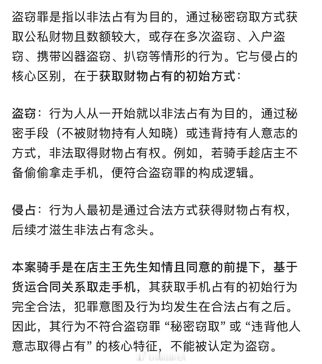 这件事比较尴尬的是,从法律层面来讲,就算你报警,最终结局是警方不会立案,因为骑手并非【盗窃】而是【非法侵占】,只能通过自己去法院起诉(可以找平台要求提供骑手身份信息),所以今后大家对于贵重的东西还是走快递+保价的形式最靠谱。