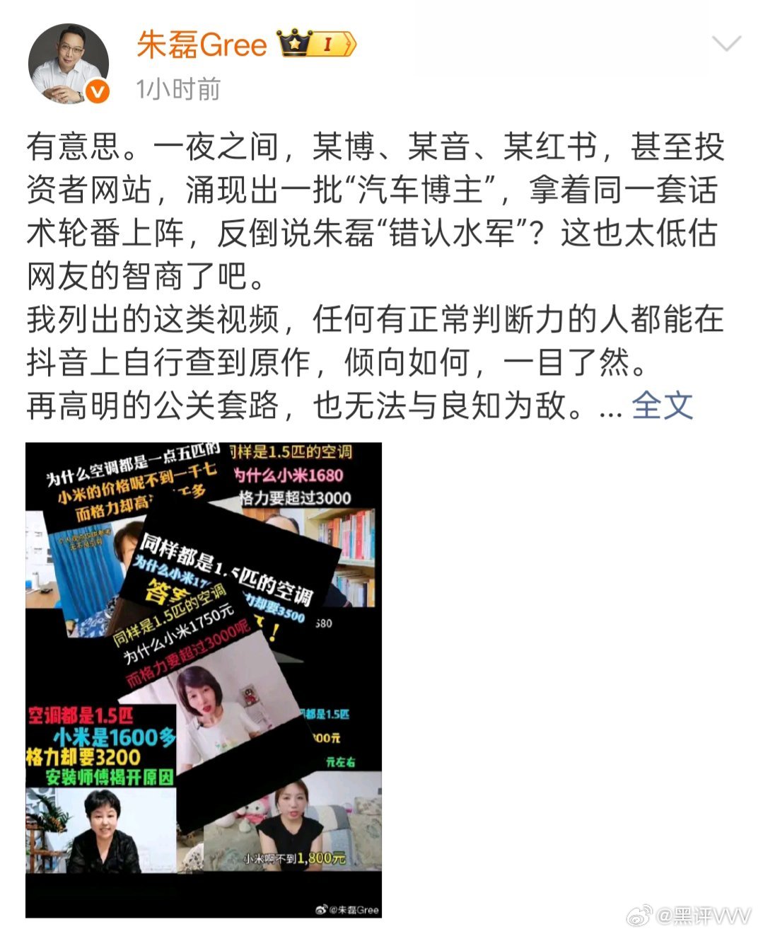 朱磊的战斗力感觉得到了董明珠的真传,他简直就是董明珠的嘴替,我严重怀疑他就是董明珠亲自挑选出来的市场总监。