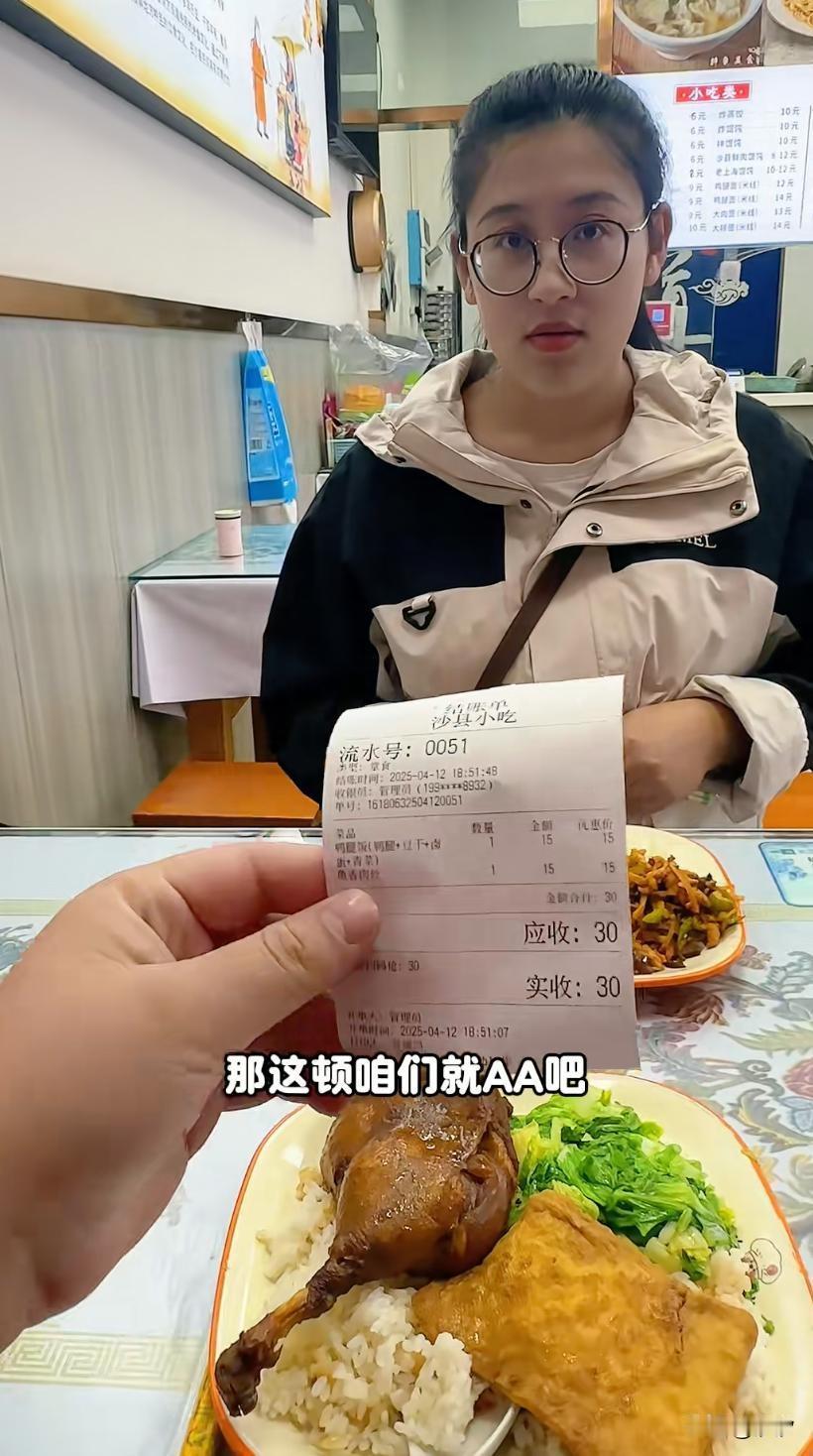 小伙网上相亲奔现了, 看着女友照片清纯可爱, 两人也是聊了很久了, 心灵算是很契合了, 第一次见面约到了沙县小吃, 女方要了鱼香肉丝盖饭, 他要了鸭腿饭, 总共花费30元还要和对方AA制, 亏他说得出口, 旁边吃饭的人都看呆了, 虽说没有照片好看, 不过能陪你吃沙县的姑娘才是老婆, 人家姑娘都没有嫌弃你寒酸, 你倒好还嫌弃人家长相了, 虽说是眼镜妹, 但是皮肤好小嘴唇也挺可爱的, 这种底子非常好, 随便打扮一下赛嫦娥, 这小伙子明显不识货, 姑娘也看出来了小伙子不乐意了, 说了句算了吧,我请你吧! 这格局这胸襟, 真是活该你单身! 小伙还觉暗探怒省20元, 这都什么人呐! 大家觉得小伙子网恋相亲不满意请吃沙县还AA制合适吗? 相亲交友 聊聊相亲的经历 相亲对象脱单 小伙相亲 相亲