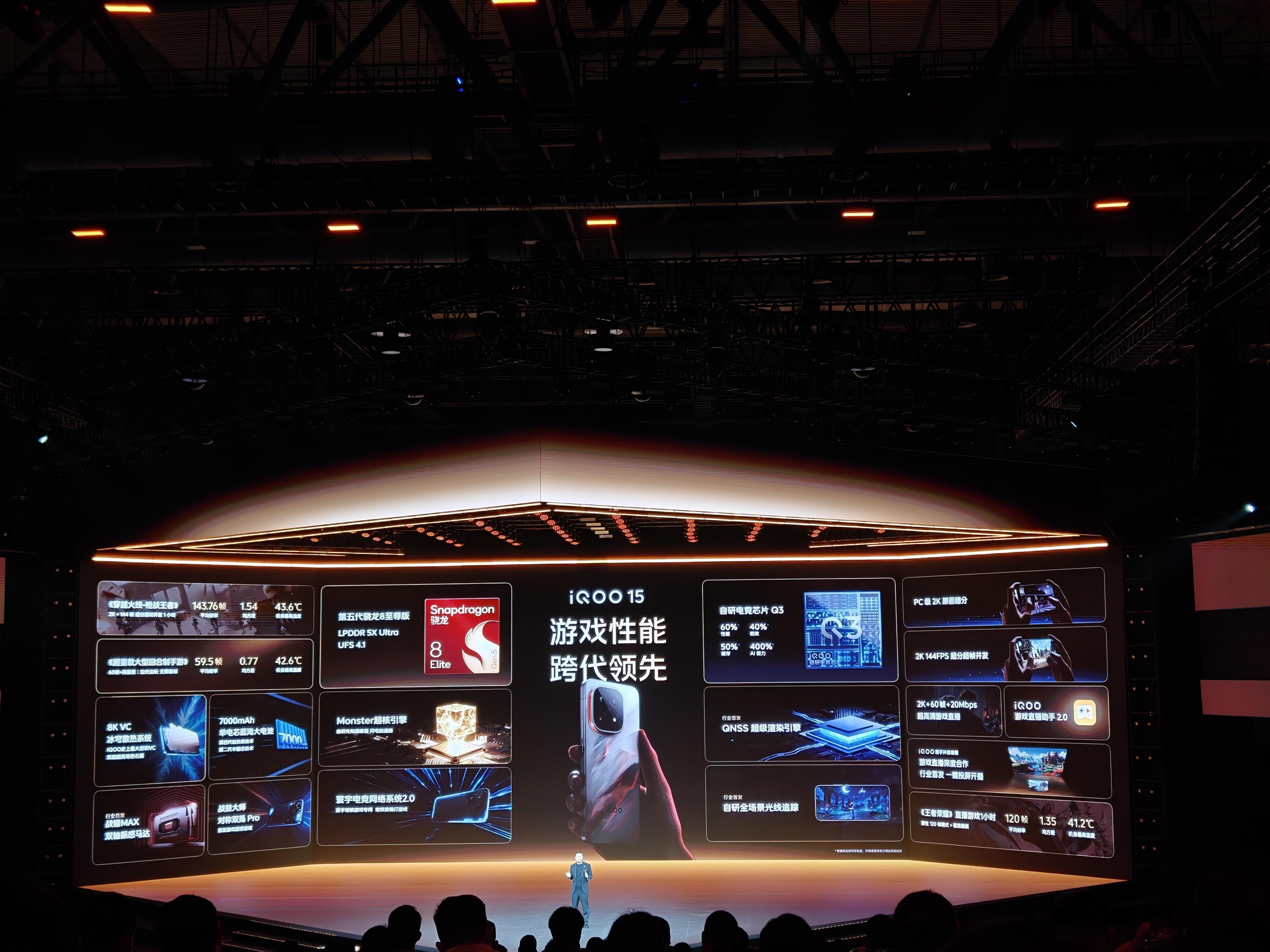 iQOO 15正式发布4199起!全体起立!作为性能旗舰,搭载第五代骁龙8至尊版与自研电竞芯片Q3,首创手机显卡理念,实现《王者荣耀》144FPS+极致画质,配合8K冰穹散热系统,长时间高负载运行稳定。