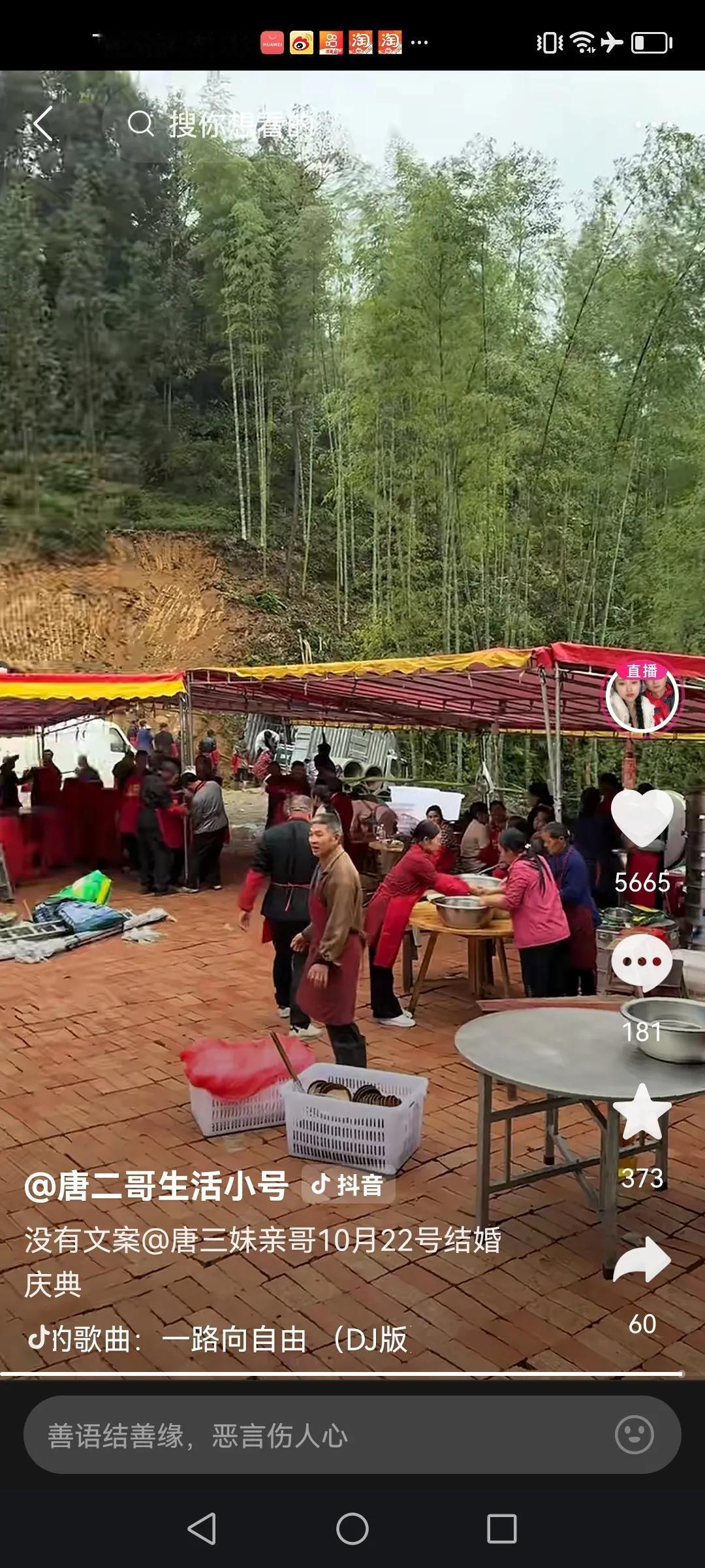 恭喜唐三妹大哥喜结连李,唐三妹大哥家是四川宜宾的,这个房子是老房子,应该是住了几代人了,他们这次办婚礼还在老房子边上平整了很大一片地,搭建了帐棚,临时用的,唐三妹今天晚上还去了昭通鲁甸美美的直播间一下子刷了二十多个抖音一号,唐三妹为人很低调善良,只要是对她好的她都会尽力的去帮助,唐三妹的两个大哥人也很好,在他们村子里都是大家互帮互助的。