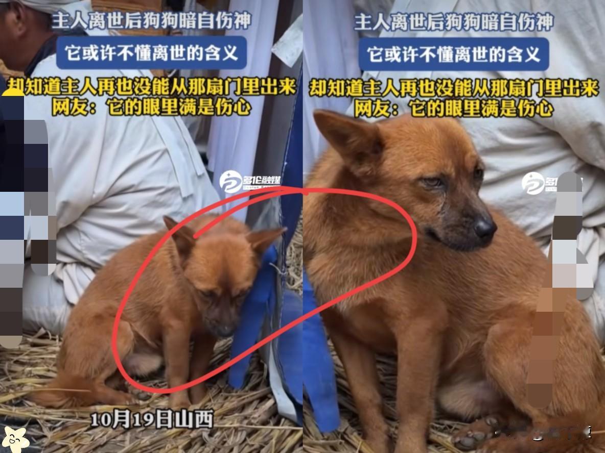 “彻底解释不清了!”山西一老人去世,哀乐一响,家里的狗狗找个角落低下头暗自伤神,它或许不懂离世的含义,但是从它的眼神可以看出悲伤的感觉! 哀乐一响起,那只棕褐色小狗立马缩到角落,脑袋耷拉得快贴到地上,眼眶周围挂着湿漉漉的痕迹,连眨巴眼睛都透着股蔫蔫的难过,整只狗像被抽走了精气神! 有人抬杠说“可能是家里太吵没睡好”,可谁见过没睡好的小狗,会露出那种“好像天塌了”的眼神? 老人生前把它当亲孩子疼,每天亲手做饭喂饭,摸它脑袋唠家常,这份陪伴早刻进了彼此的日子里! 狗狗或许不懂“离世”是什么意思,但它一定清楚,那个总给它开门、喊它吃饭的人,再也没从那扇门里走出来! 以前总觉得“共情”是人类的专属技能,直到看了这只小狗,再想起网友说的爷爷去世后饿到皮包骨头的流浪猫,才发现动物的感情比我们想的更纯粹直白! 它们不会说“我难过”,却能把悲伤藏在每一个蔫蔫的动作、落寞的眼神里,比人类的眼泪更戳心! 它到底是伤心还是没有休息好,我觉得我们不要去打破砂锅探究到底了!