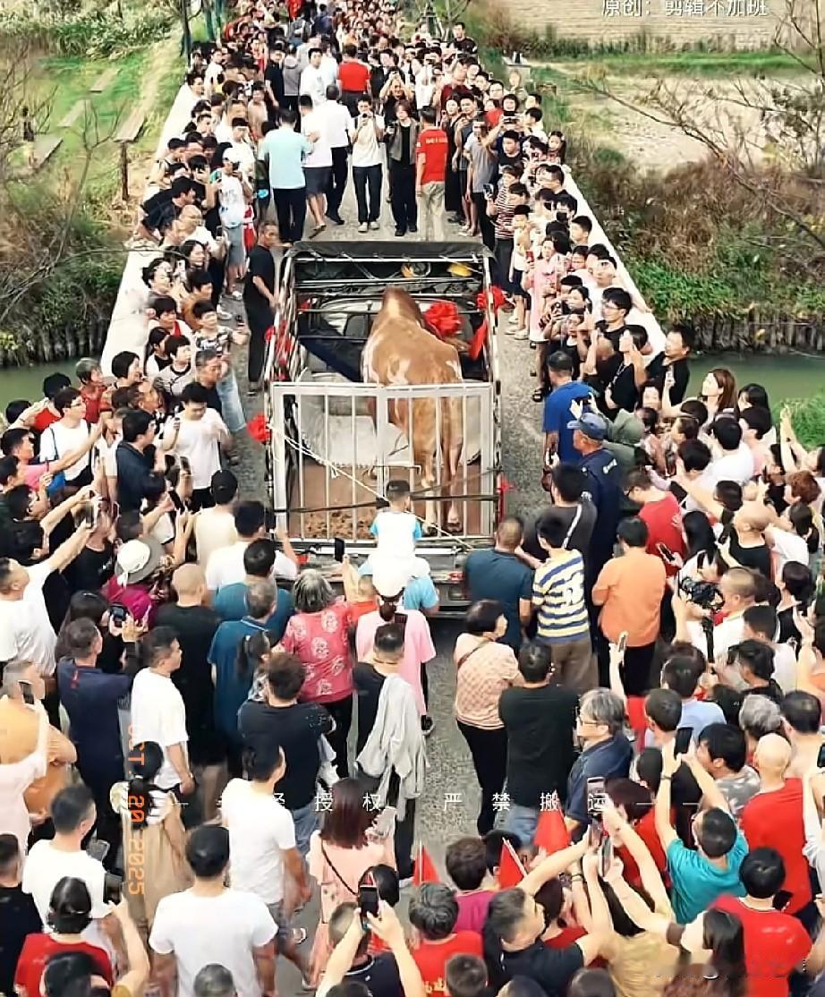冠军牛贵州关岭黄牛落户晋江九十九溪田园风光,入住豪宅独幢状元桥冠军别墅,照闽南风俗习惯,举行入户乔迁仪式,烧金纸拜土地公!