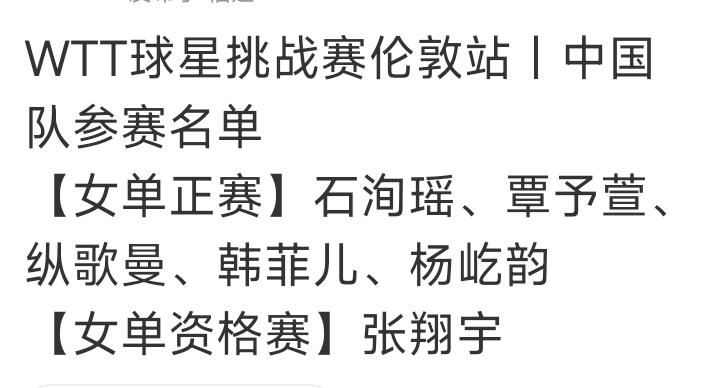 国乒🇨🇳参赛选手抵达伦敦! 国乒参加WTT球星挑战赛伦敦站的小将们今天抵达英国伦敦,因为堵车严重,他们选择坐地铁去酒店,下图就是这些参赛的孩子们[笑哭]。 本站比赛,国乒男队没有派出选手参赛,原因可能是赛程太密集,或者是还有其他更重要的安排。 国乒女队派出了石洵瑶、蘑菇、粽子、韩菲儿、杨屹韵参加女单正赛,另有张翔宇参加女单资格赛。 女双项目上,国乒也派出了两对儿选手参加正赛,一对儿选手参加女双资格赛。 其实日本队派出了全部主力选手参赛,比如张本兄妹、伊藤、桥本、早田、美柚、木原等。 本站比赛明天(10月21日)开始——也就是说又有比赛可以看了[笑哭][笑哭]。