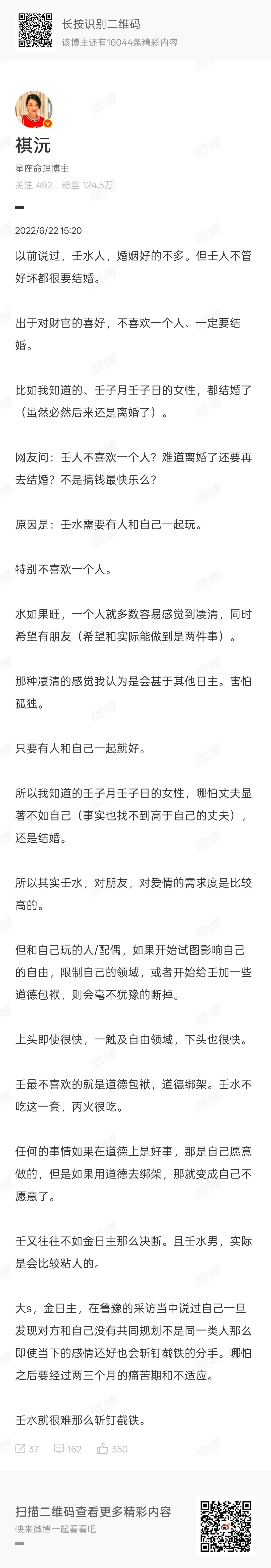 壬水还是讲爱情的,我觉得壬只要真的喜欢你,不是短择,壬水一旦喜欢某一个人,全世界都能看出来。