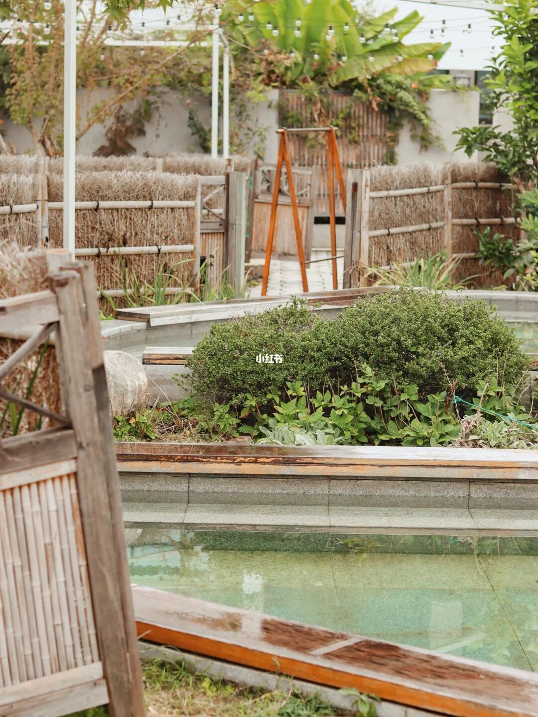 酒店的八个天然汤池隐于花园内,八个汤池各不相同,每方泡池也都有其特别的功效,如玫瑰池清新养肤、姜粉池御寒祛湿、