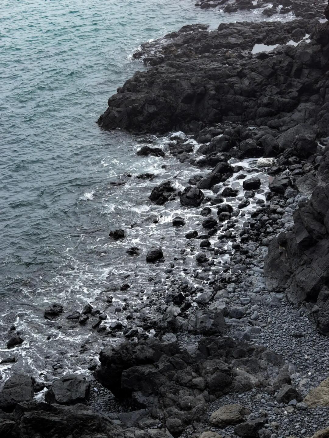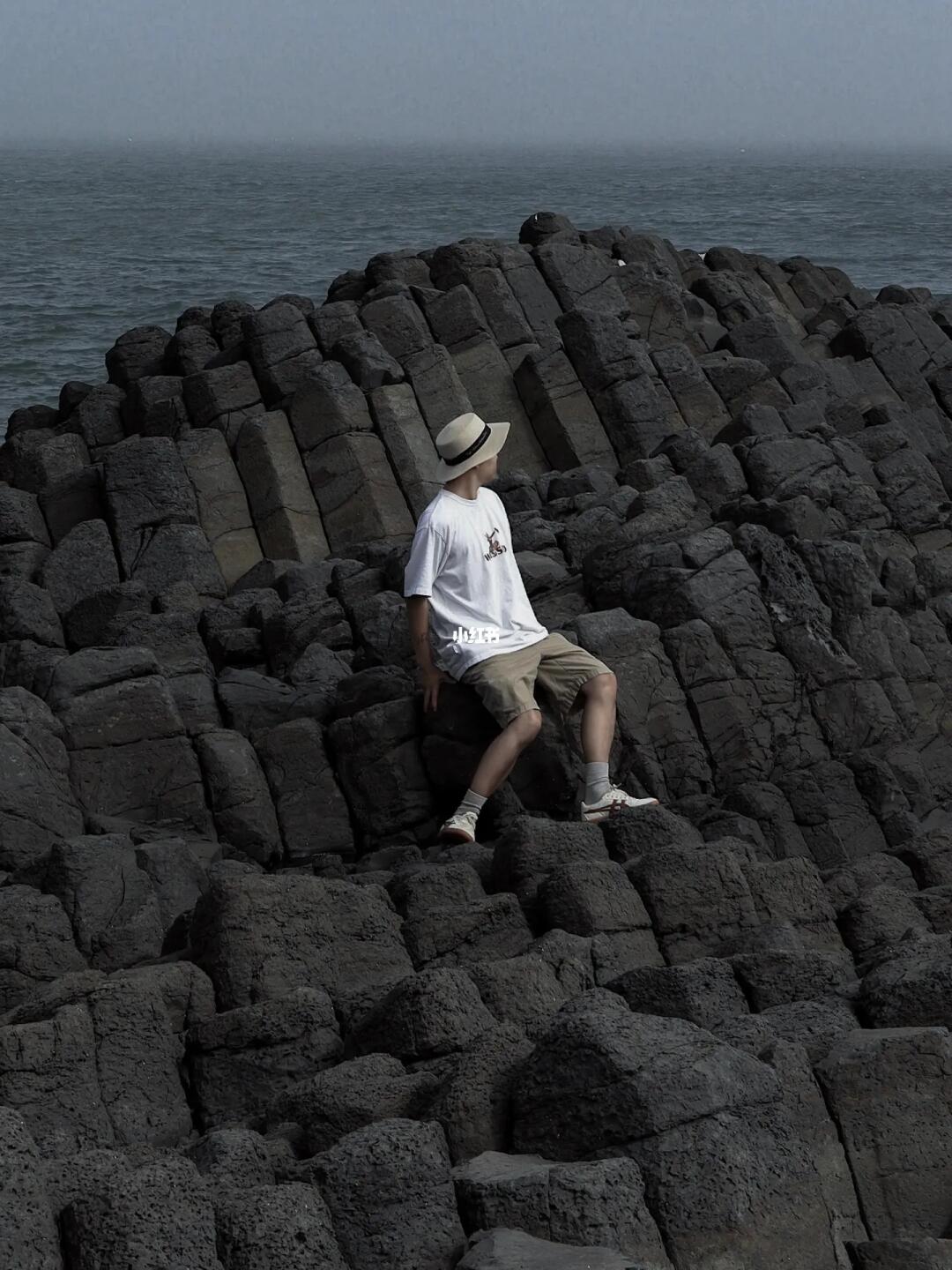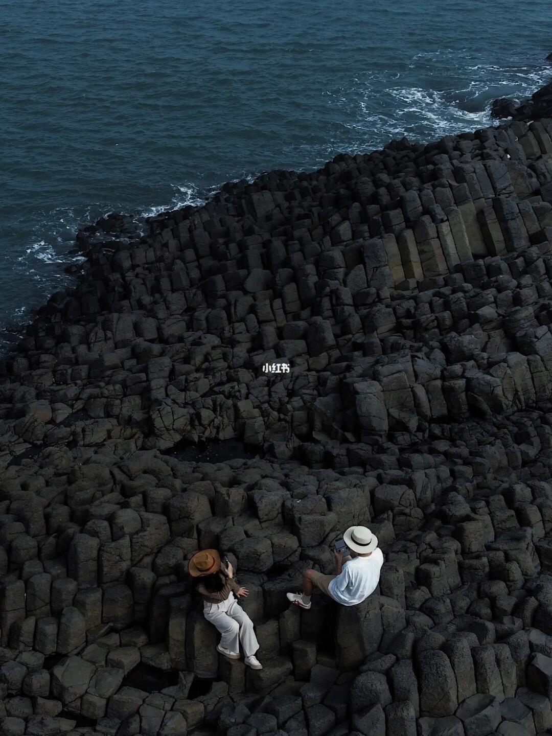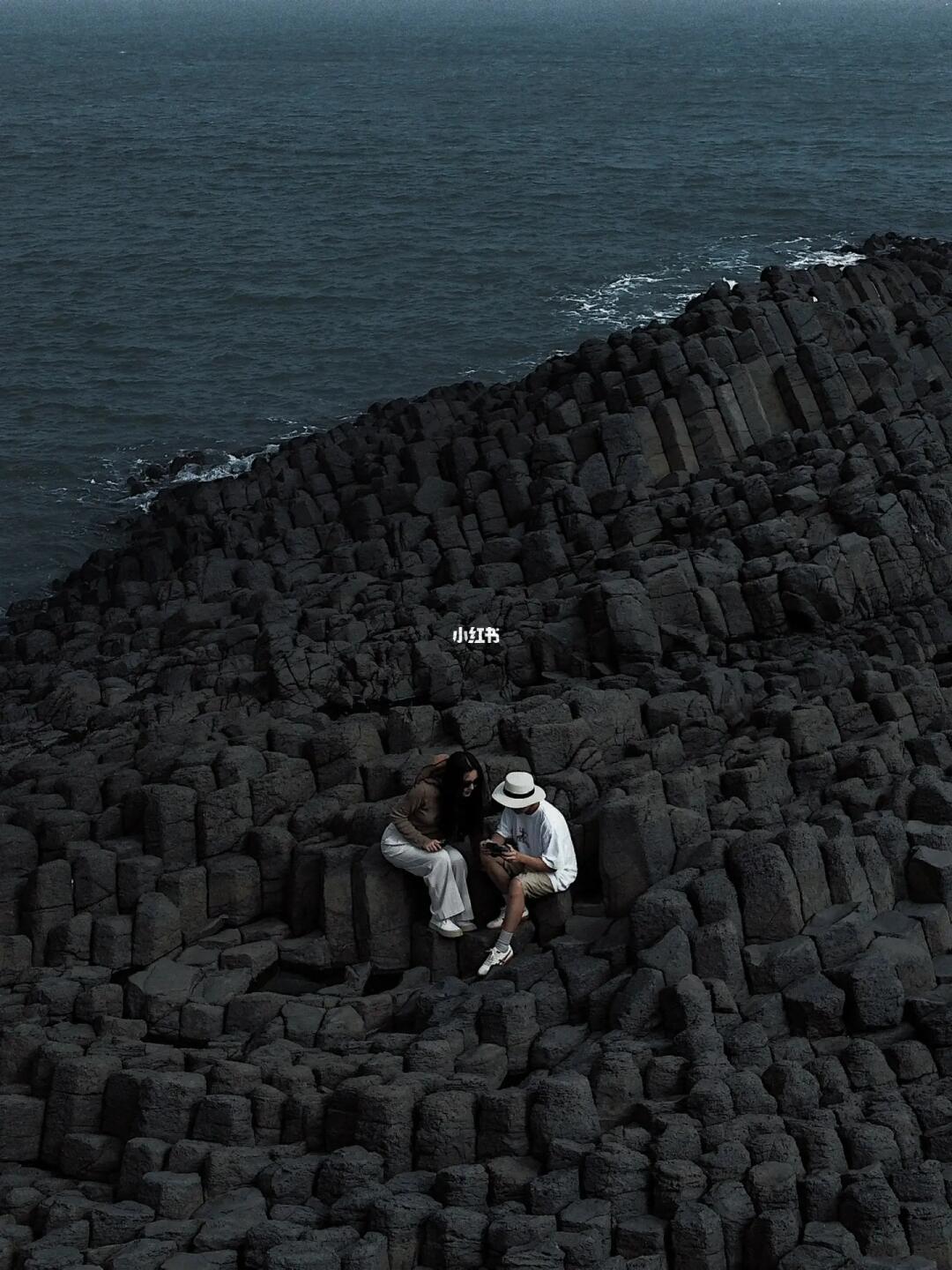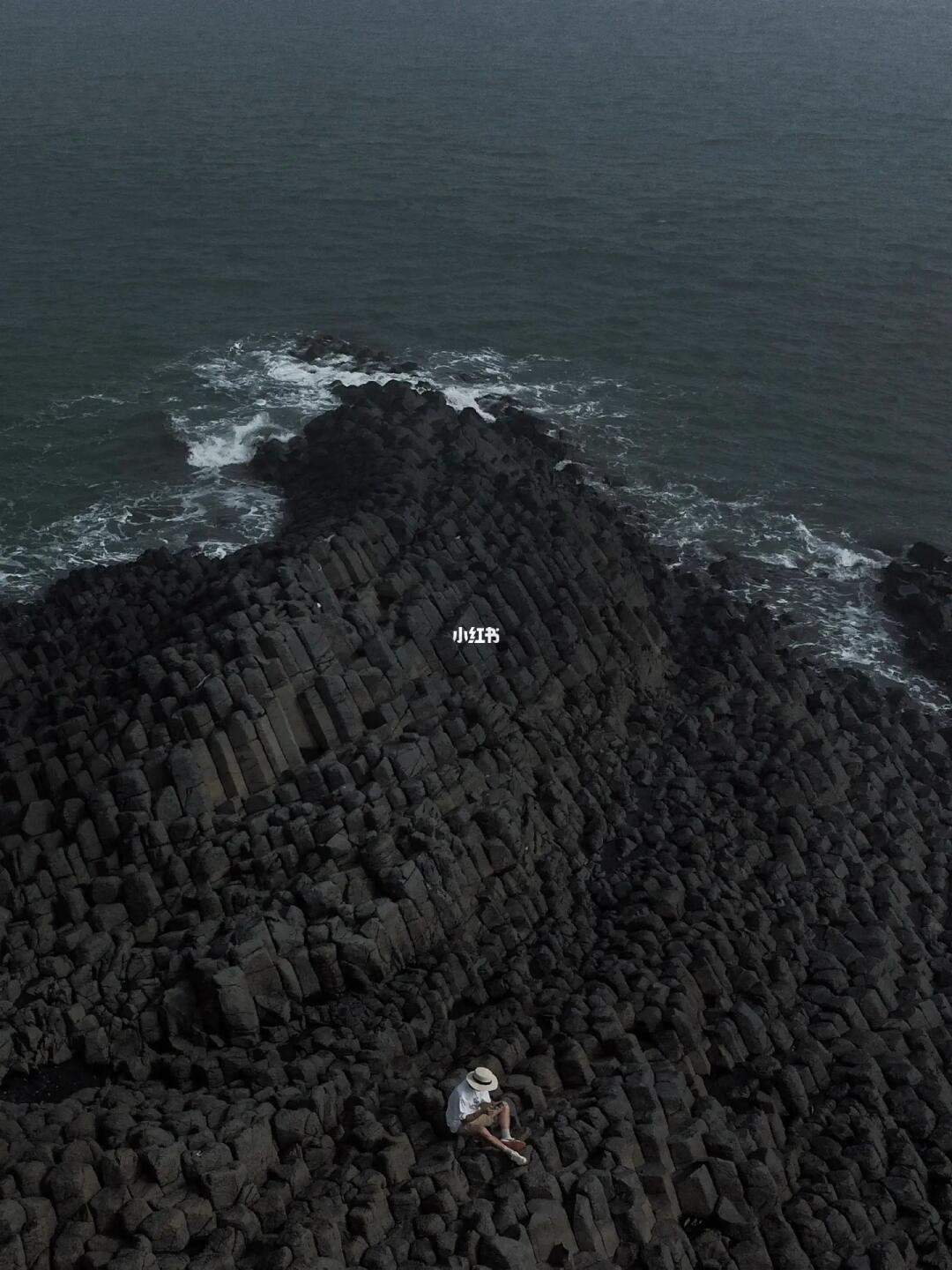 黑沙滩与柱状岩是肉眼可见的呈现出黑色