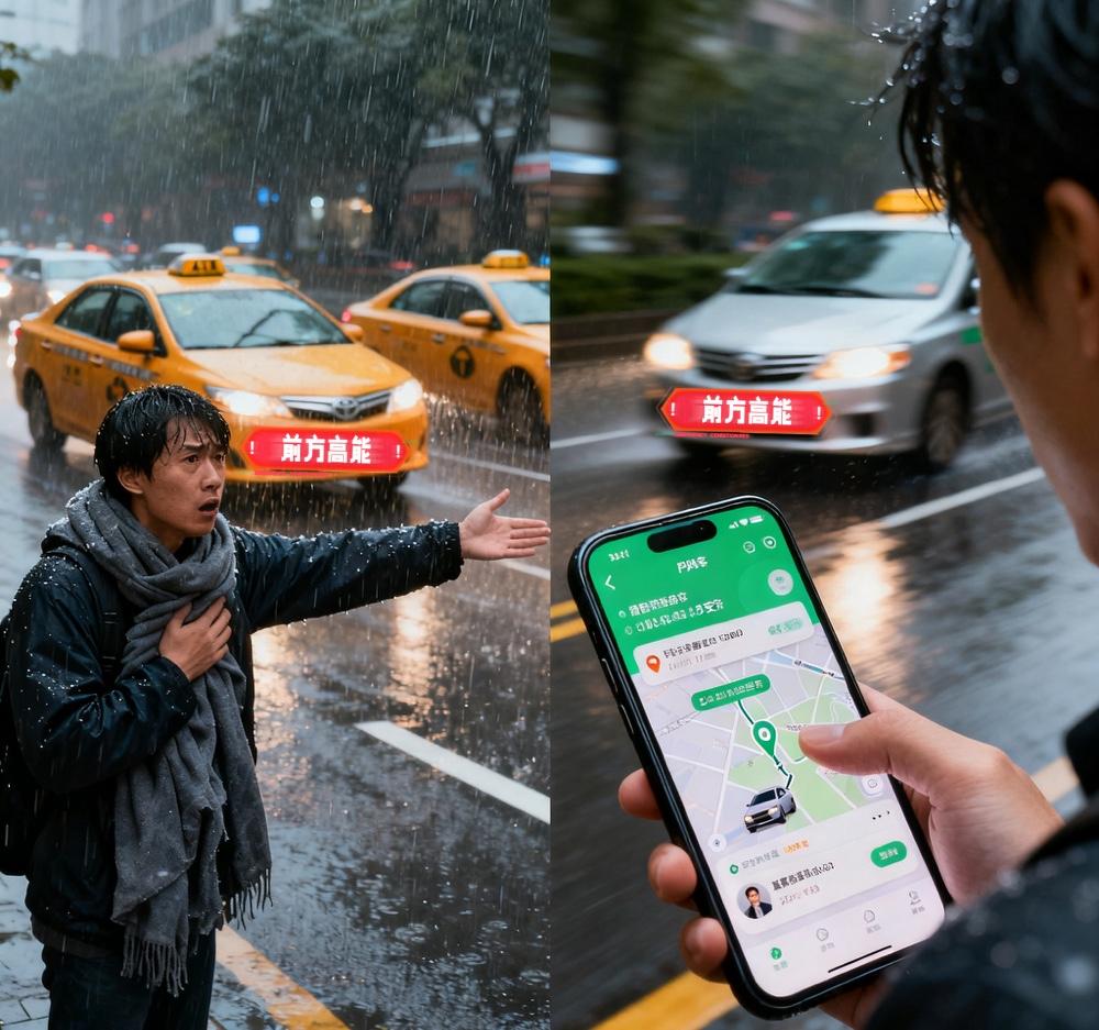 前几天下大雨,公交站等车看见有人在路边伸着胳膊拦出租车,站了快20分钟,要么满员要么不停,冻得直哆嗦。现在点开APP选好地址,3分钟就有司机接单,还能看见车到哪了,这方面比以前坐出租车可方便多了。 不是说出租车不好,就是现在人出门,图个省心省事,不用在风里雨里等好长时间,价格也透明。可照这样下去,那些还在路边等客的出租车师傅,以后的生意还会好吗? 为什么网约车比出租车受欢迎?