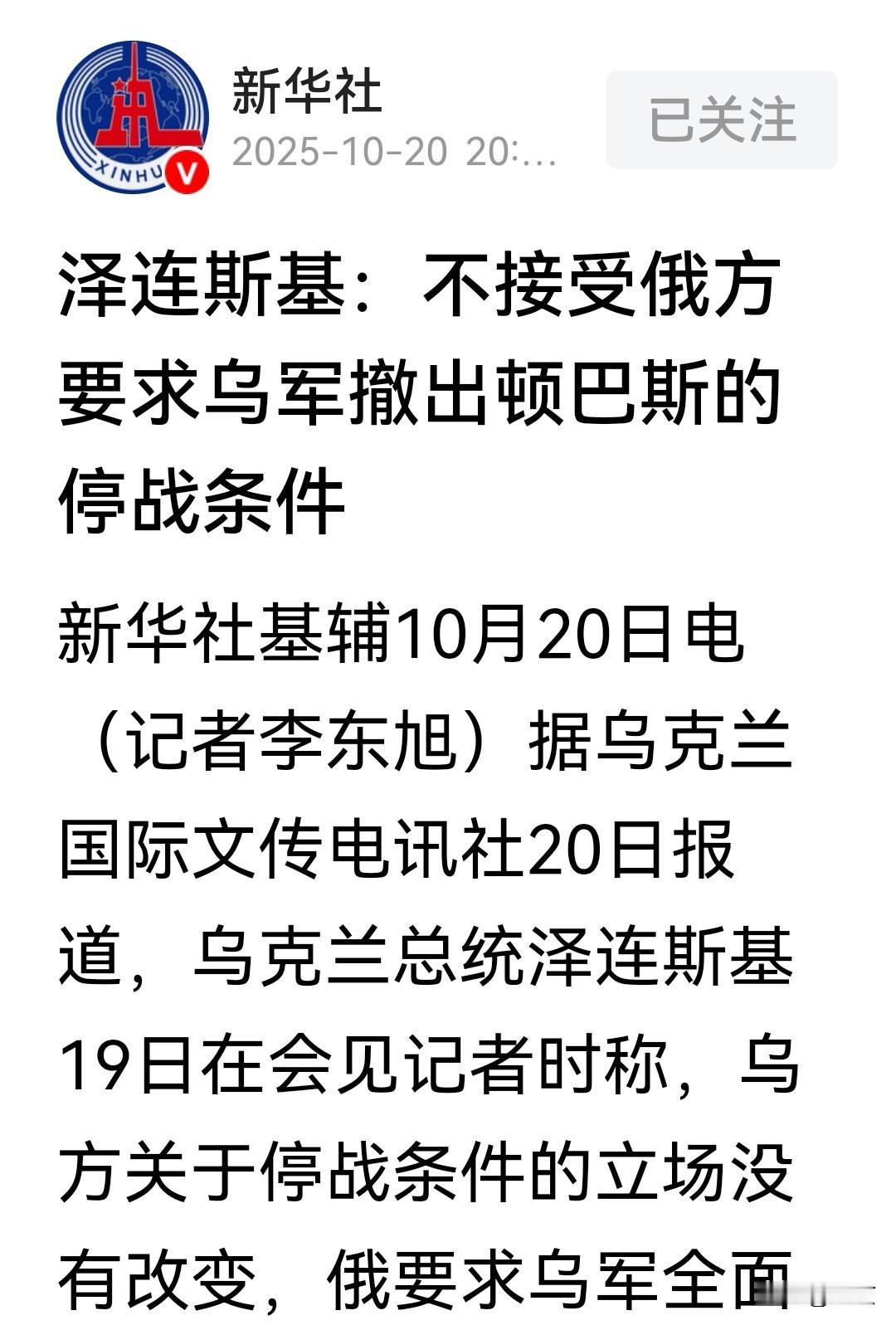 智商不高,骨头挺硬。 10月19日,泽连斯基再次无视特朗普的威胁,宣布乌克兰不会割让每一寸土地。 后果,他当然知道。 以后,美国的武器是没有了。就欧洲那几个耍嘴炮的家伙,援助也日渐减少。 大概率乌克兰要靠自己生产导弹无人机,来对抗俄罗斯了。 这个二愣子,当初被人家一忽悠,就押上了国运,智商确实不高。 但现在看来,三怼特朗普,死磕俄罗斯,骨头挺硬。 仗打到今天,估计每个乌克兰人心中,都是仇恨,这恐怕就是泽连斯基的底气了。