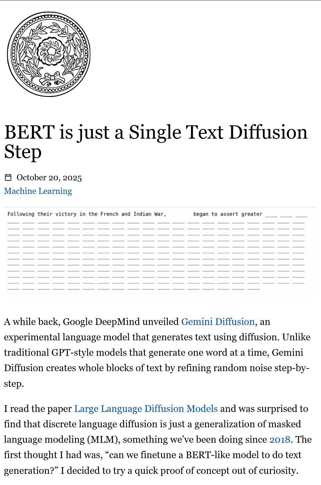 Andrej Karpathy提到的一篇文章: nathan.rs/posts/roberta-diffusion/