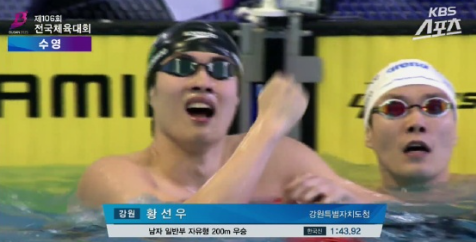 男200自成年组决赛,黄宣优1:43.92AR,打破了孙杨保持八年之久的亚洲