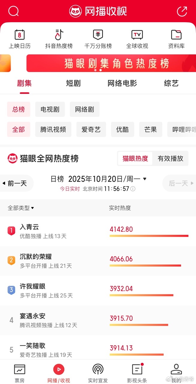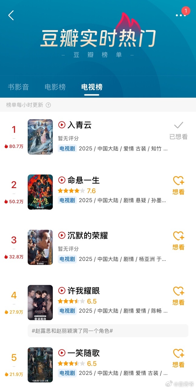 入青云21个榜单全面登顶 刚在👖看到《入青云》热度破10000+,还在猫眼、灯塔等21个榜单拿了TOP1,这数据也太能打了!环环相扣的剧情、男女双强的拉扯,每处都透着用心,破万真的值得,求加更的心已经藏不住了!