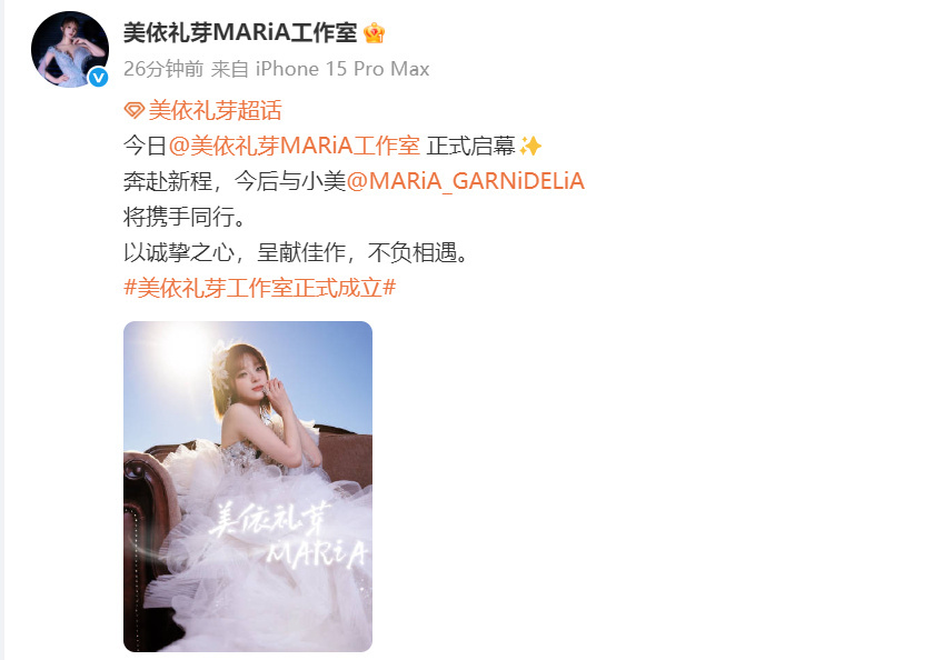 曾演唱《极乐净土》《桃源恋歌》等热门歌曲的前GARNiDELiA成员「美依礼芽」今日官宣正式成立个人工作室。