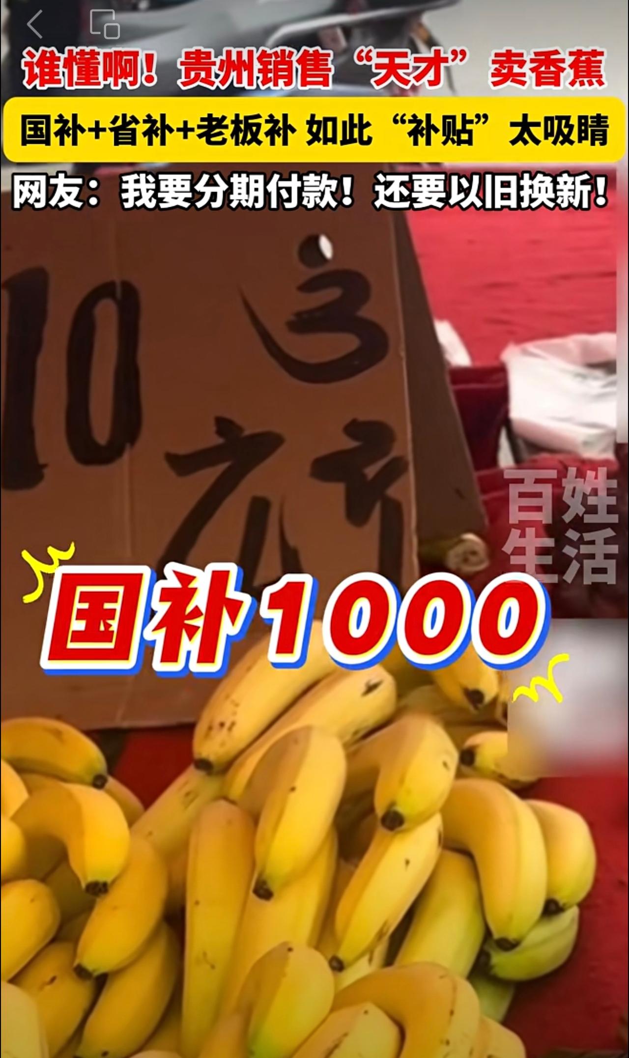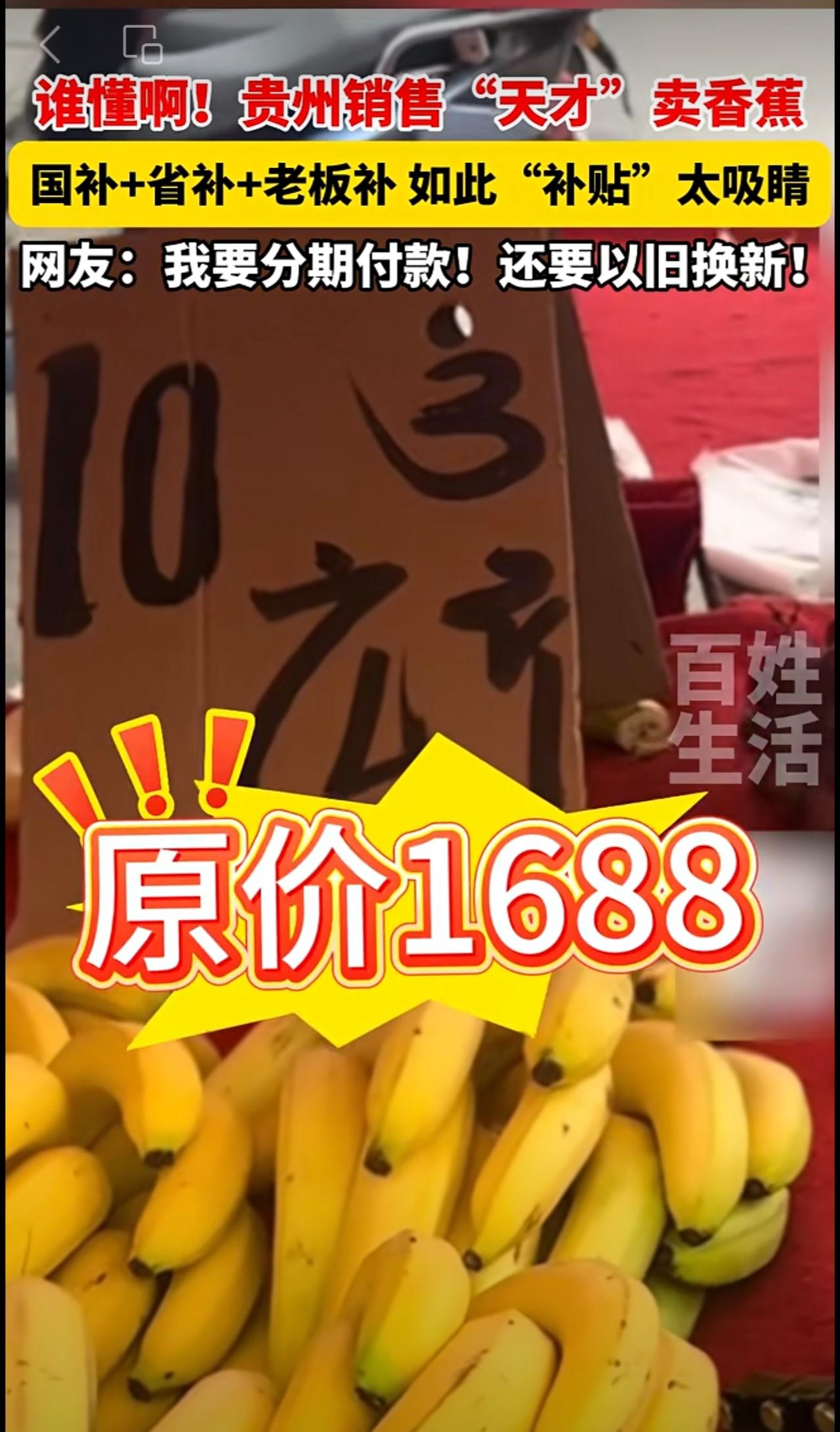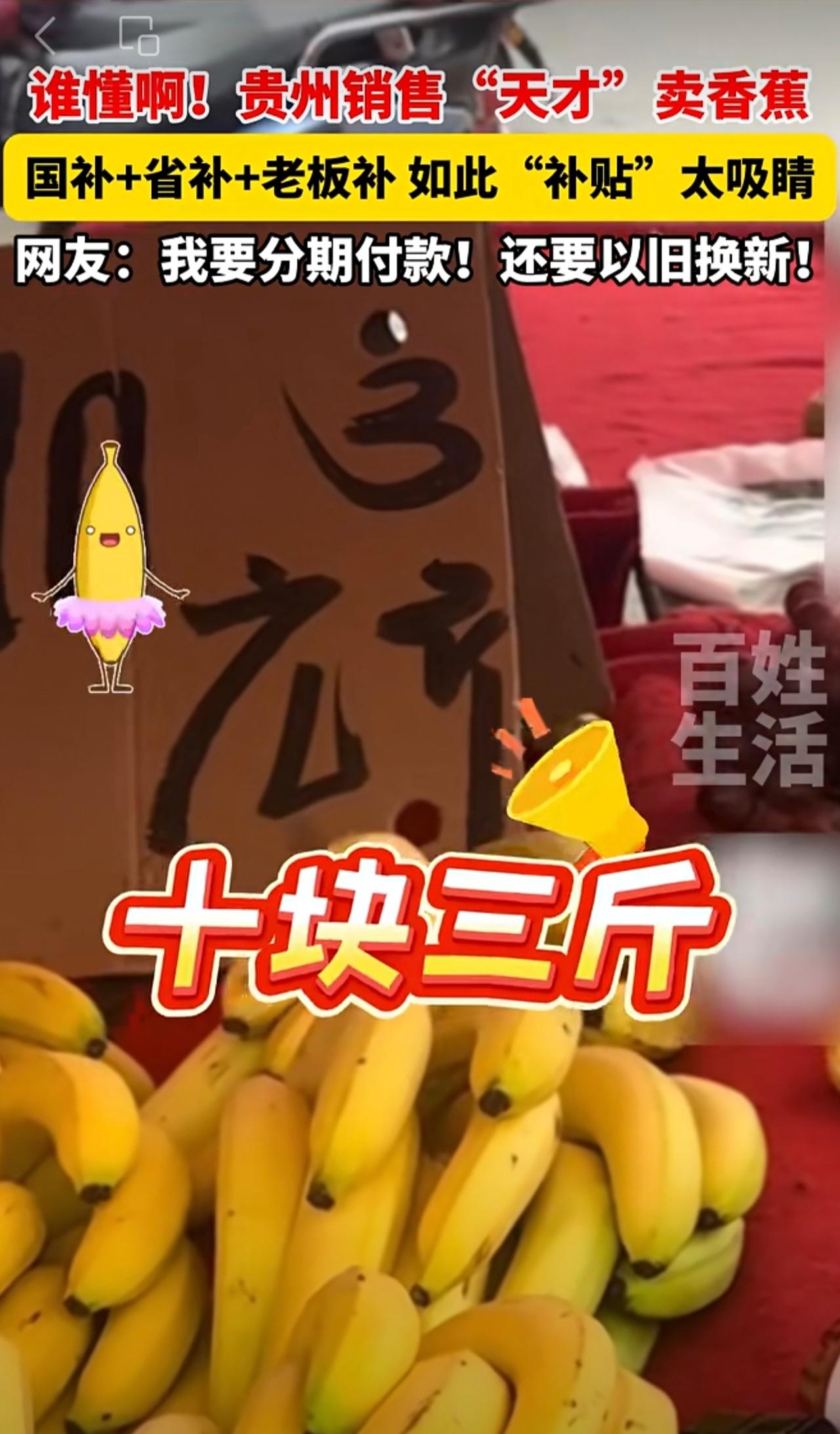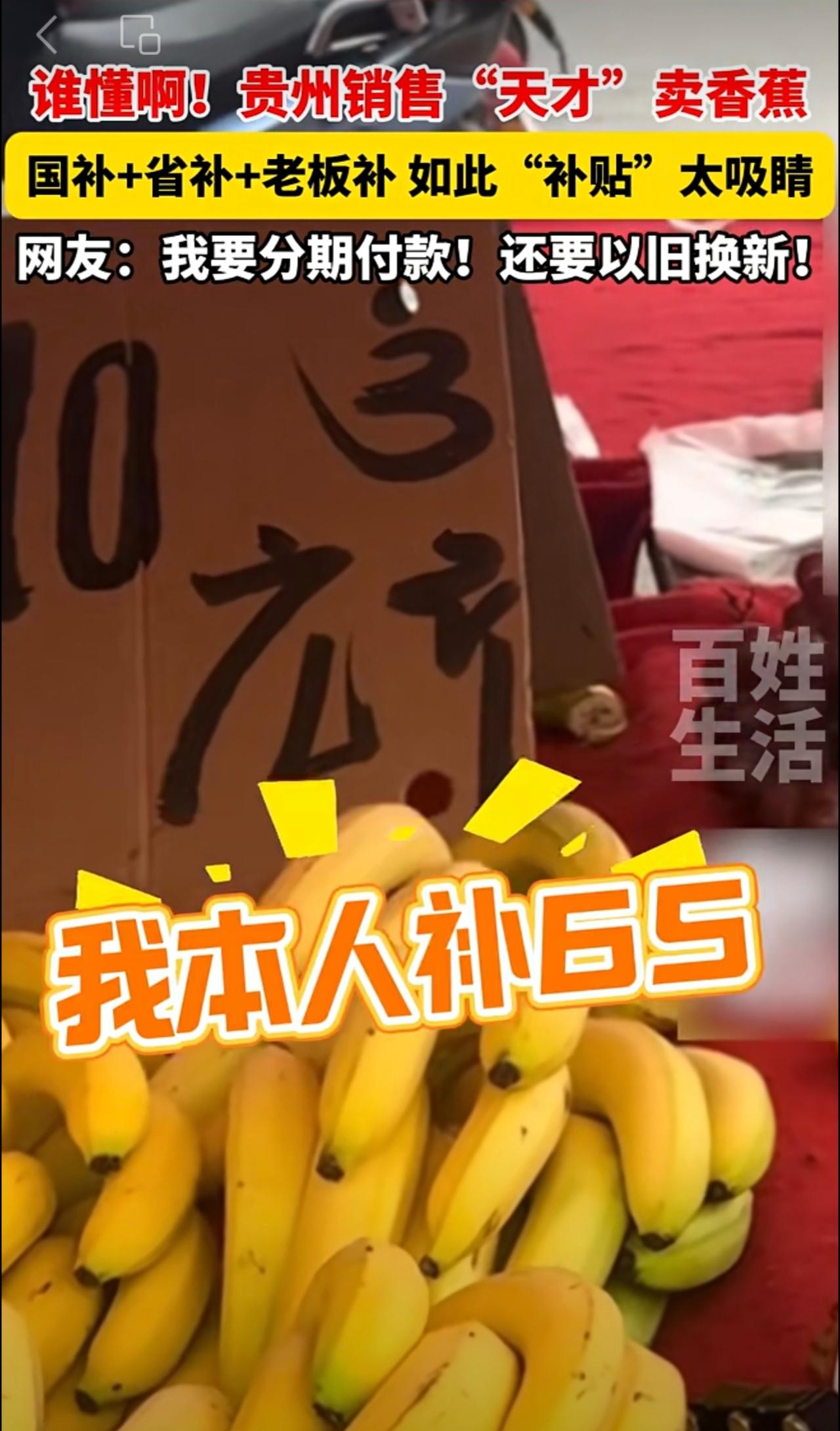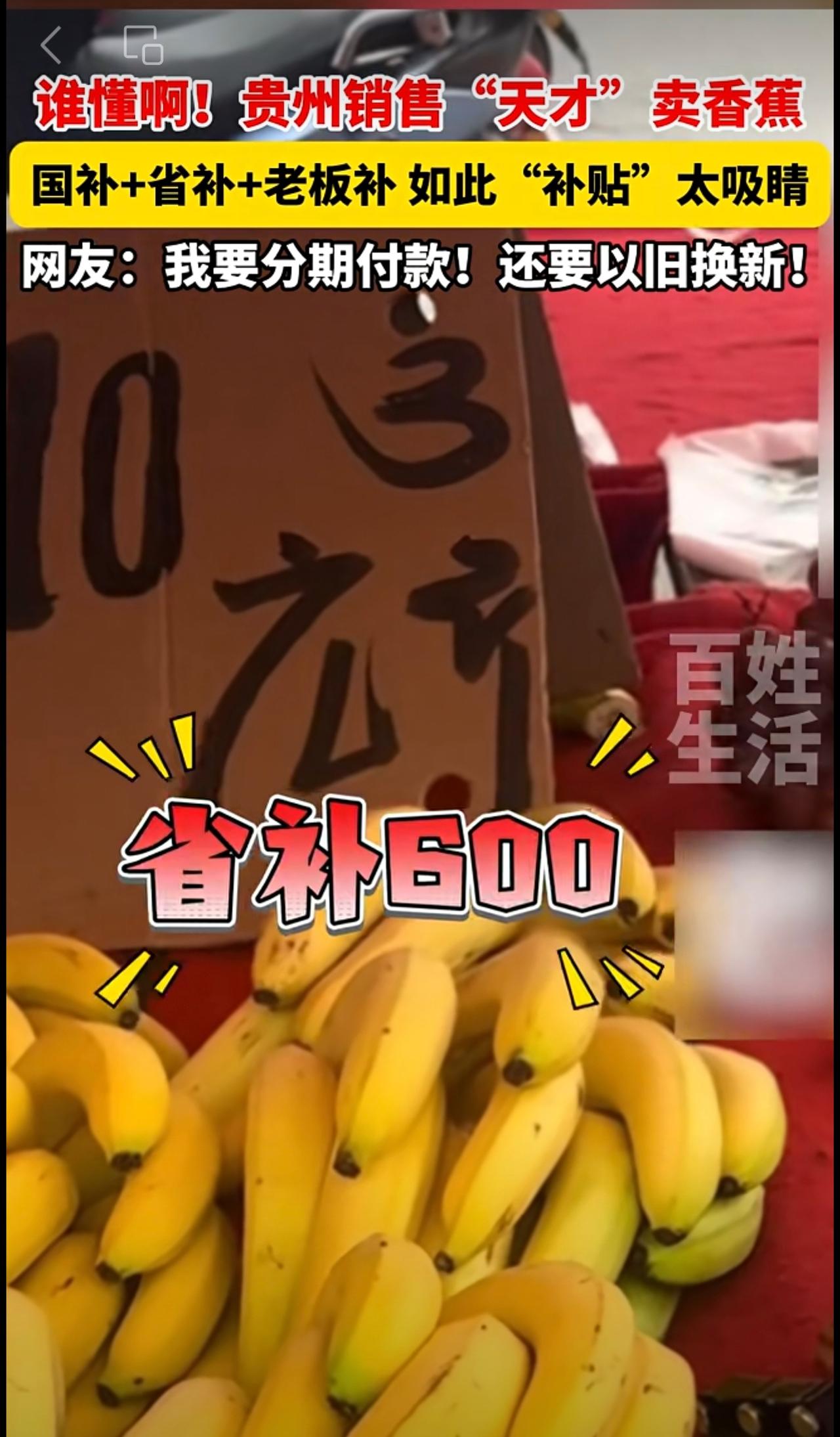 谁懂啊!贵州销售“天才”卖香蕉 国补+省补+老板补 如此“补贴”太吸睛网友:我要分期付款!还要以旧换新!