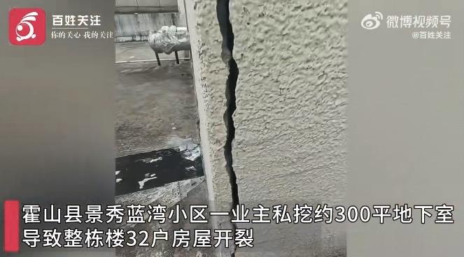 安徽一小区业主私挖300平地下室32户开裂! 安徽六安一小区的32户业主,如今