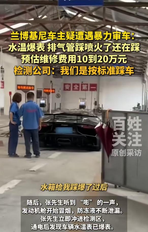 四川成都一男子花800万多万买兰博基尼,审车时突发故障!尾气检测中排气管连喷火,设备报警仍被检测员继续“踩油门”,发动机舱冒烟水温爆表,车主当场报警,质疑检测站操作不当! 麻烦看官们右上角点击一下“ 关注”,既方便您进行讨论和分享,又能给您带来不一样的参与感,感谢您的支持! 10月15号,张先生洗干净了那台闪着金属光泽的兰博基尼,像送孩子去体检一样,把它开进了检测站。 车身的每一寸都映着蓝天白云,发动机的轰鸣像是低沉的咆哮,一种属于金钱与机械完美结合的声音,别人审车是例行公事,他审车像是一场仪式,毕竟那可是价值八百万的心头肉。 他没有走远,就站在检测区外,那姿势说不上紧张,更像是老父亲看着孩子考试:既自信又忐忑。 检测员戴着手套、踩着踏板,一切似乎都很正常,直到排气管忽然喷出第一团火,像喷火龙突然发威。 张先生眉头一跳,还没反应过来,第二团、第三团火又接连喷出,火光在空气里闪烁,吓得旁边几个看热闹的人都退了两步。 他心里咯噔一下,觉得不对劲,那是他第一次见自己的车子喷火,还是在别人脚下,就在这时,检测设备发出滴滴的报警声,一台气泵闪着红灯。 张先生心想,出问题了总该停下吧?可检测员像什么都没听见,脚还在油门上,一脚比一脚狠,发动机的声音高到刺耳,像在硬撑着一口气。 几分钟后,空气突然被一声闷响撕裂——“砰!”像有人在车尾塞了一颗小炸弹,白烟从发动机舱里冒出,气味呛人,防冻液顺着车底流出来,一股甜腥味混着焦糊味在空气中弥漫。 张先生顾不上旁人,几步冲进检测区,满脑子只剩一个念头:别烧了,别烧了!他一通电,水温表的指针直接贴在了顶端——130度!那一刻他甚至能想象发动机里的金属在变形。 检测员还想解释什么,但张先生根本听不进去,那车他从提回来就当宝一样养着,连鸟屎都舍不得放过,现在却被这样暴力对待,他看着那串冷冰冰的数字,胸口发热,像被汽油点着的火柴。 报警是必然的结果,警察来了,记录做得中规中矩,检测站的负责人语气平静,说他们严格按标准操作,不可能存在暴力审车。 张先生听了差点笑出来,标准?哪条标准允许喷火、报警还继续踩油门?他说不出话,只觉得这事太离谱。 第二天检测站发声明,称检测程序正常,建议车主通过车辆鉴定明确责任,话听起来客气,其实也没有什么实际的解决方案。 张先生无奈地笑了笑,这笑里有无力也有讽刺,车坏了可以修,可那种信任感,一旦爆表比水箱还难修。 后来他发了视频,镜头里火光闪烁、报警声此起彼伏、烟雾腾起。 一个普通的车主可能不会有七百万的车,但谁也不想看到自己的财产在别人的粗心下被玩坏,检测设备报警了还硬撑,哪怕不是故意,也是一种漠视。 张先生说,发动机要是变形,维修费至少十几万,这数字听起来吓人,但最刺耳的还是那一句“我们是按规操作的”。 有网友猜测检查工的心理:“我买不起,还不能让我过把踩兰博基尼油门的瘾?看我不给你油门踩冒烟!” 还有网友呼吁,该取消这种暴力审车行为了!根本不把车主利益当回事! 对此,大家有什么看法呢?你在审车的时候遇到过什么奇葩事儿?欢迎在评论区聊聊。